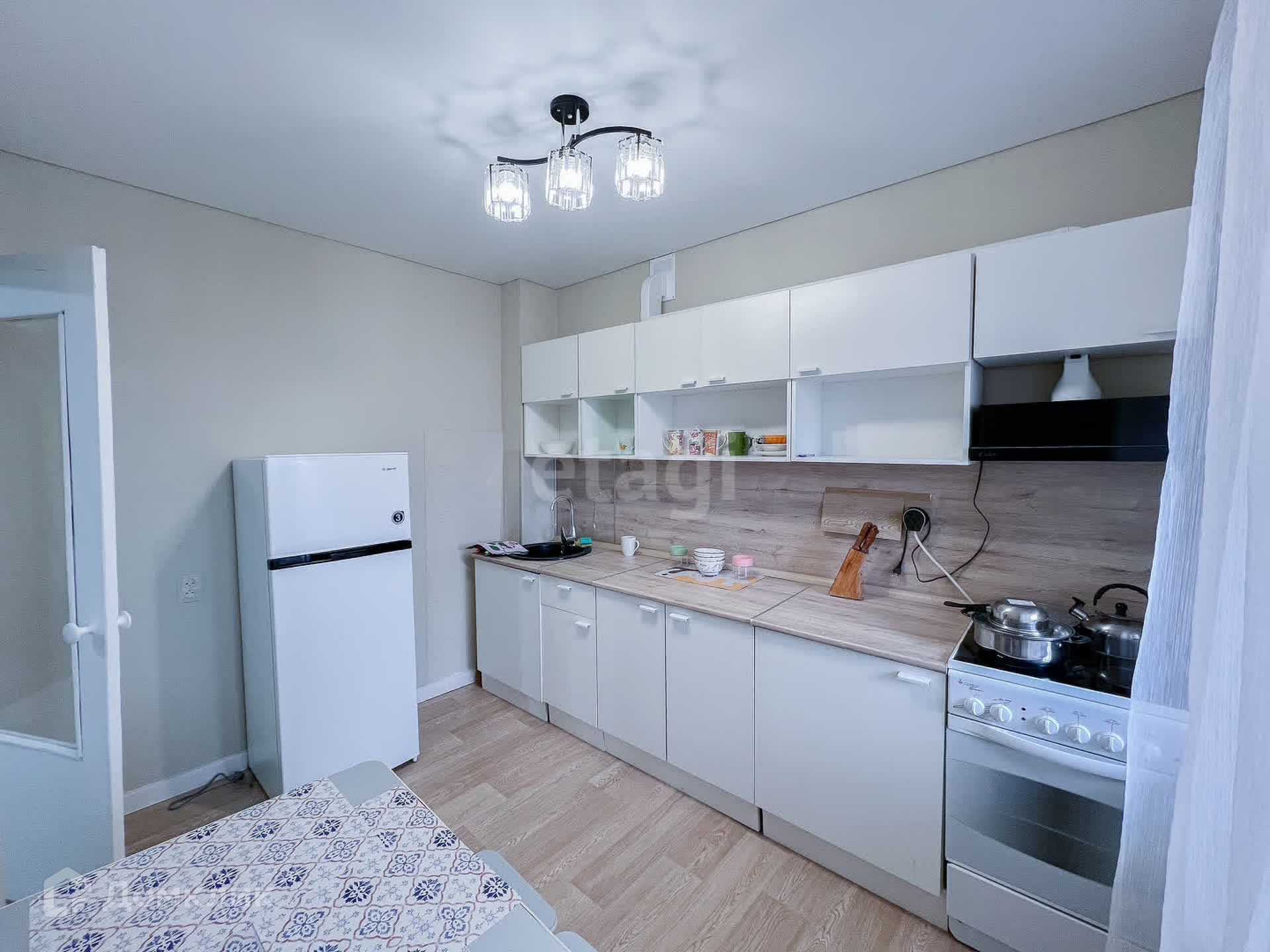 В квартире произведён новый косметический ремонт. Квартира сдаётся с мебелью: диван, кресло-кровать, журнальный столик, кухонный гарнитур, спальный гарнитур; и техникой: стиральная машинка, холодильник, пылесос; постельными принадлежностями и посудой.