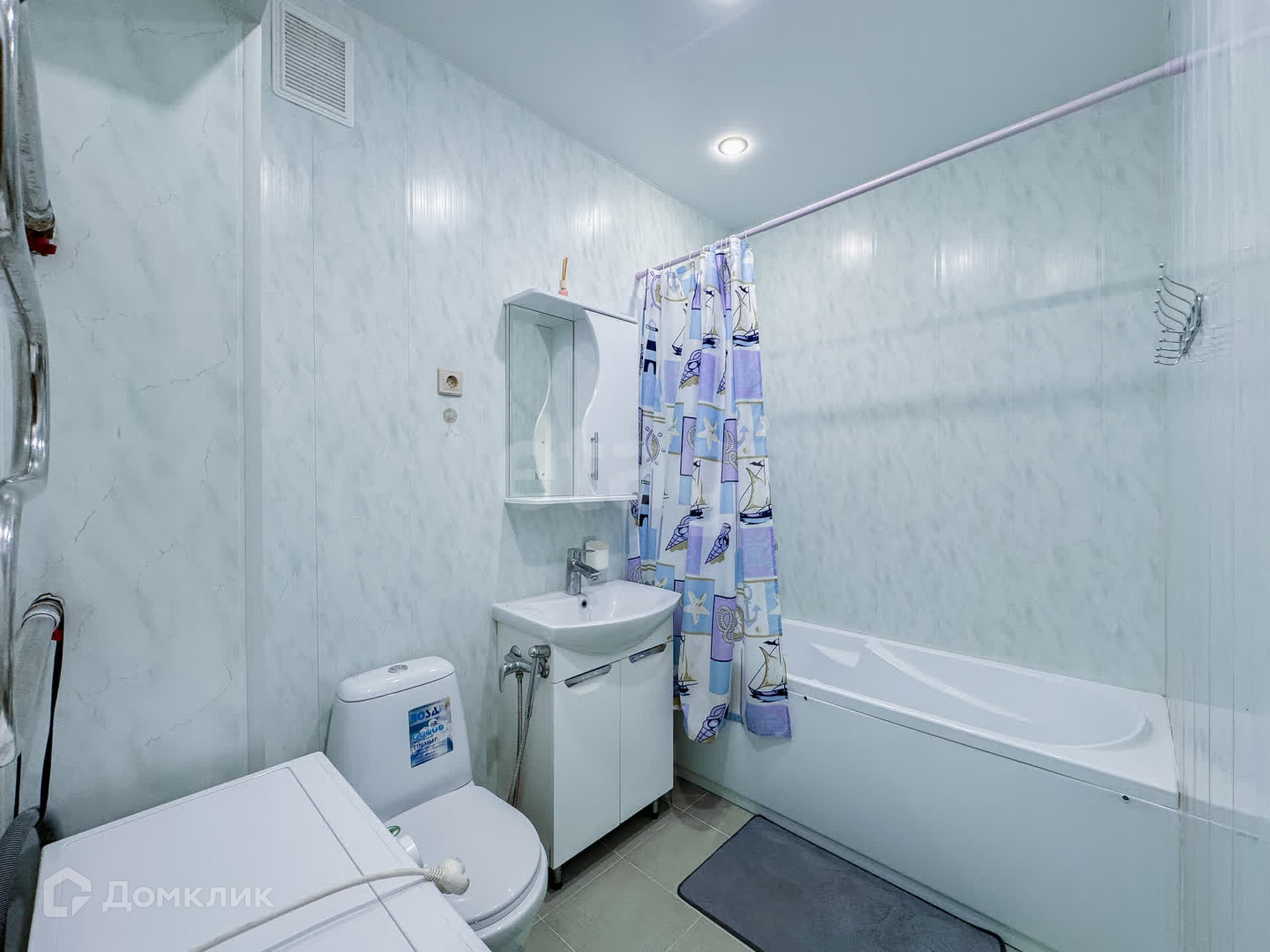 Внутри имеется вся необходимая мебель и бытовая техника: стиральная машина, холодильник, микроволновая печь, электрический чайник. Также подключено кабельное телевидение и Wi-Fi.