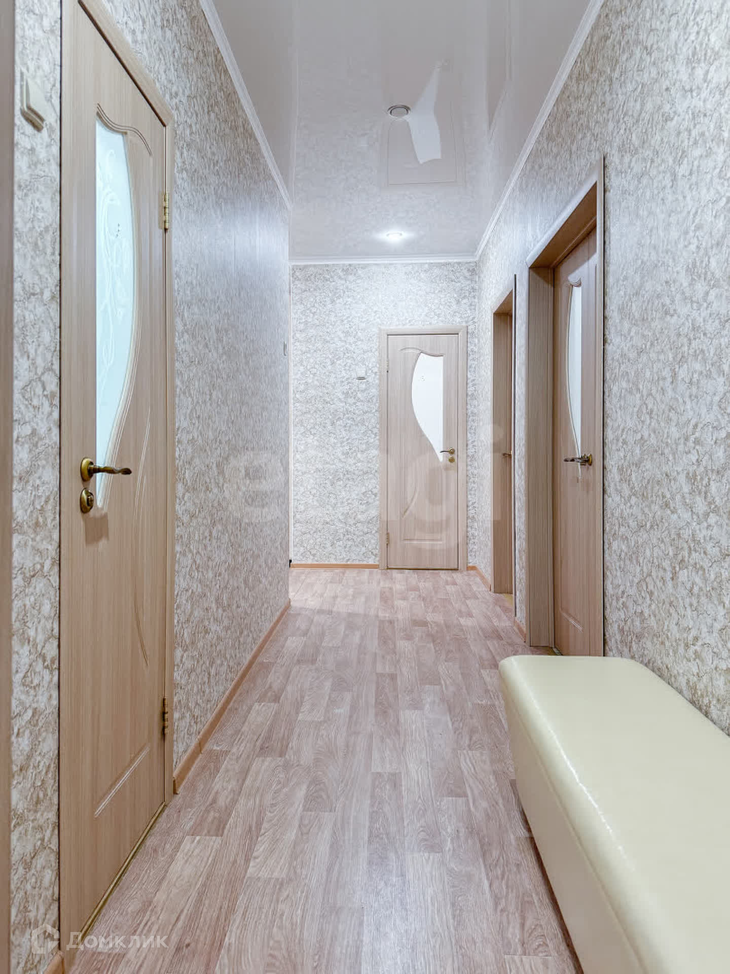 В квартире выполнен качественный ремонт: натяжные потолки, пластиковые стеклопакеты, в спальне установлены автоматические рольставни. Два санузла, облицованных плиткой, с гигиеническим душем.