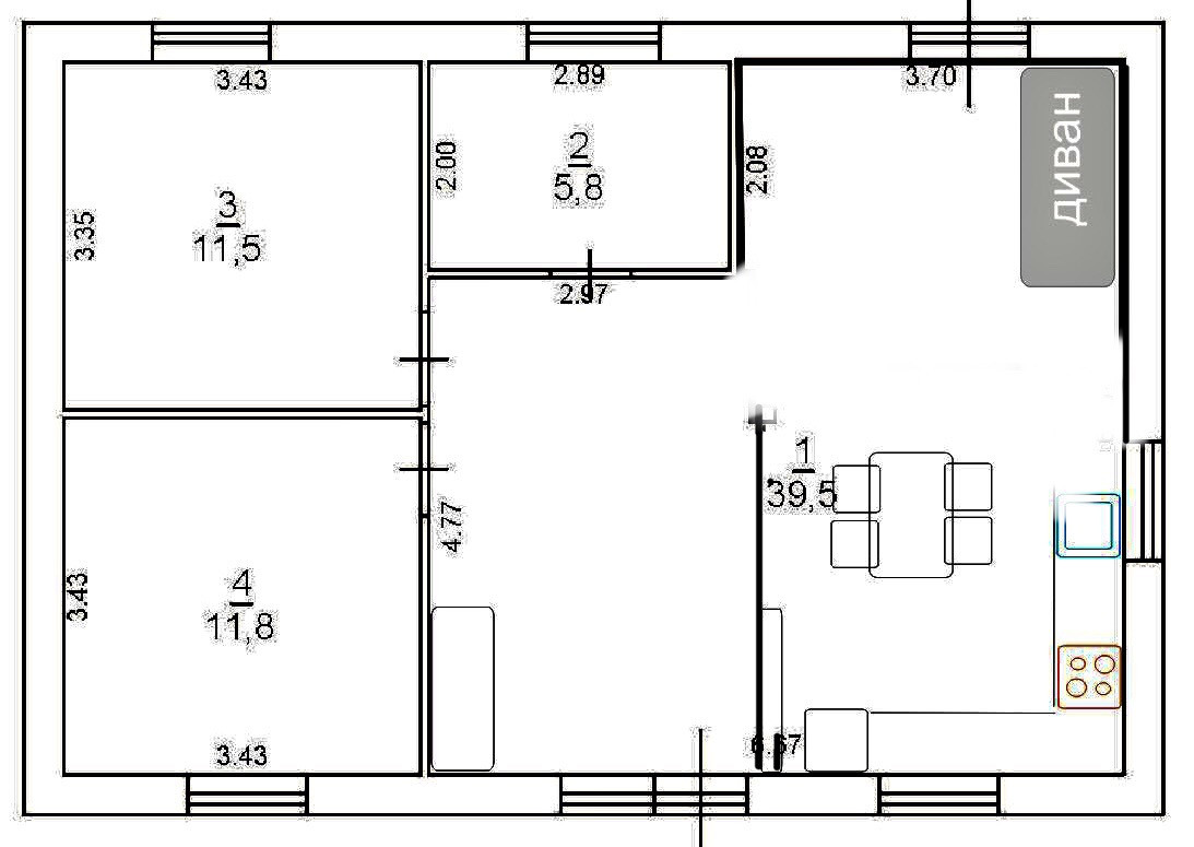 Общая площадь 70 м2