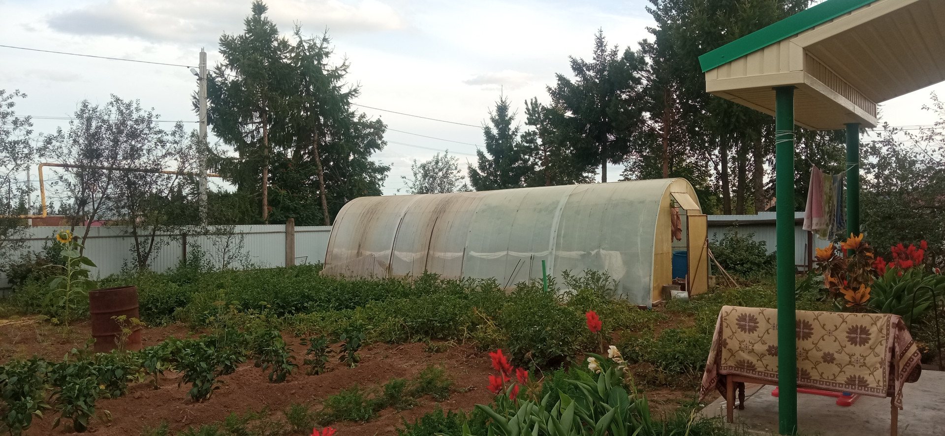 - большой ухоженный ровный участок с  2-мя теплицами,