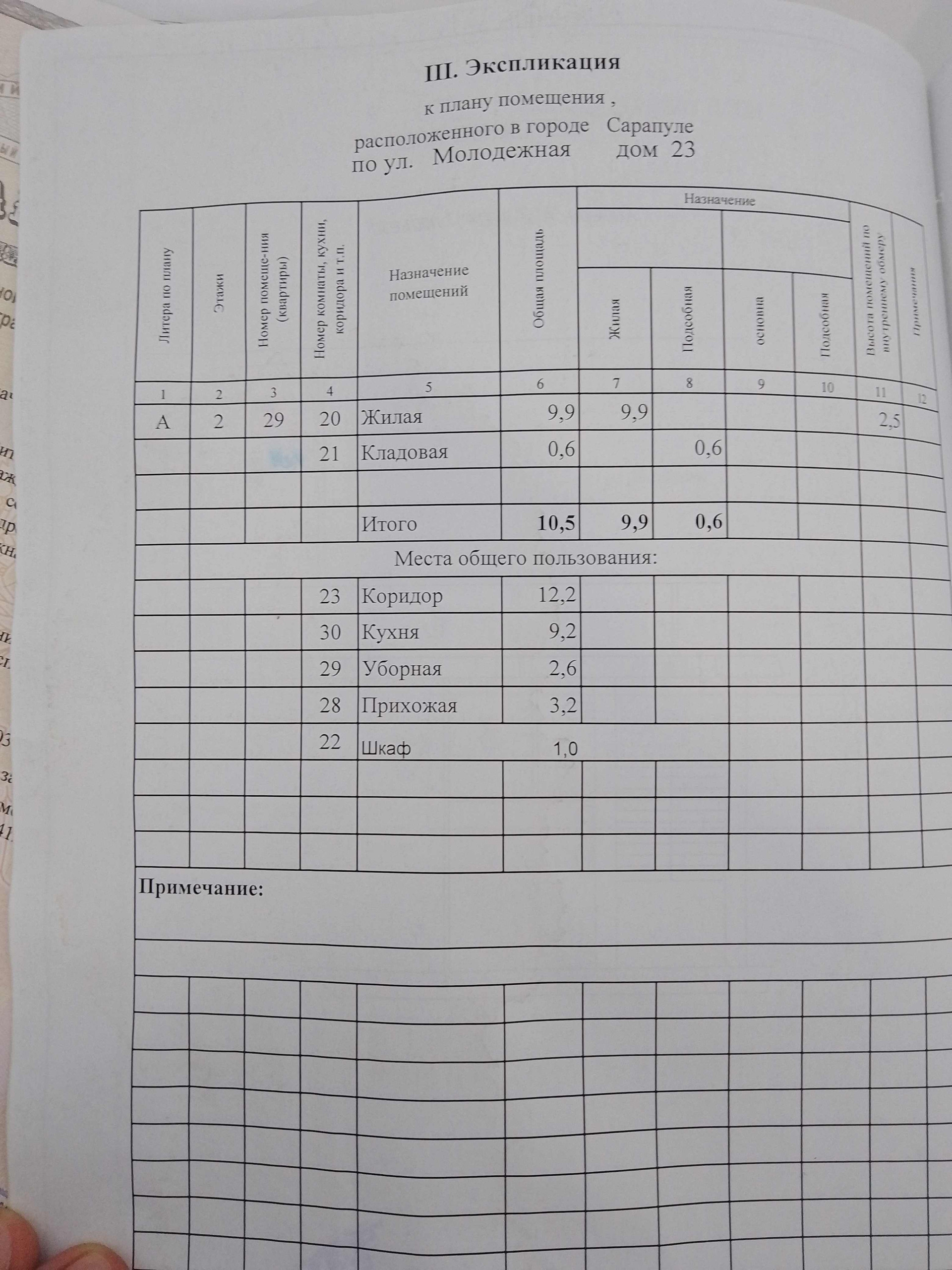 Площадь комнат