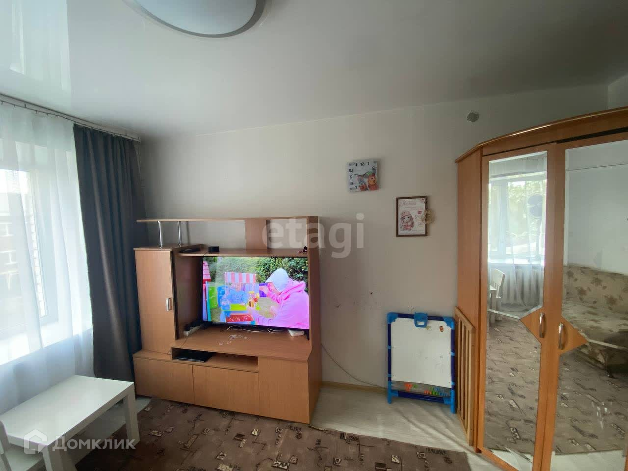 Квартира небольшой площадью 21 м.кв. Однако, за счет удобной планировки, имеется даже небольшая кладовка для хранения вещей. Окна пластиковые, металлическая входная дверь, натяжные потолки. Санузел совмещенный, пол и стены выложены кафельной плиткой. В квартире имеется кухонный гарнитур, который остается при продаже квартиры. Подъезд чистый, двор ухожен, соседи приличные. Двор не проходной. Окна квартиры, выходят во двор с видом на детский сад. Во дворе дома всегда имеются парковочные места.