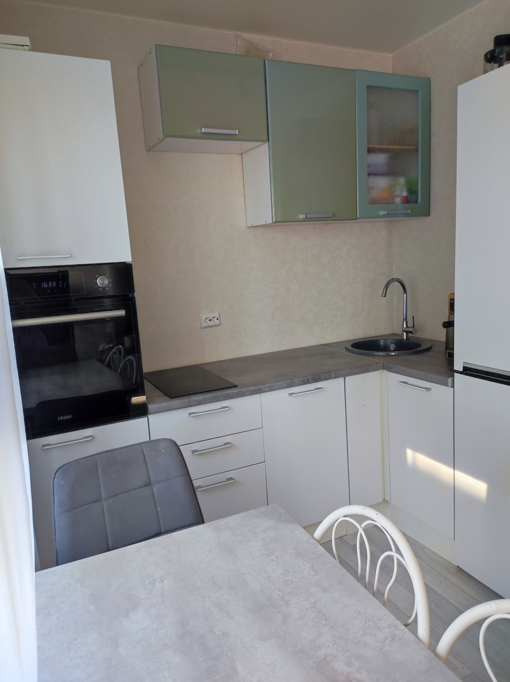 В квартире остаётся кухонный гарнитур, с варочной панелью, мебель частично по договорённости.