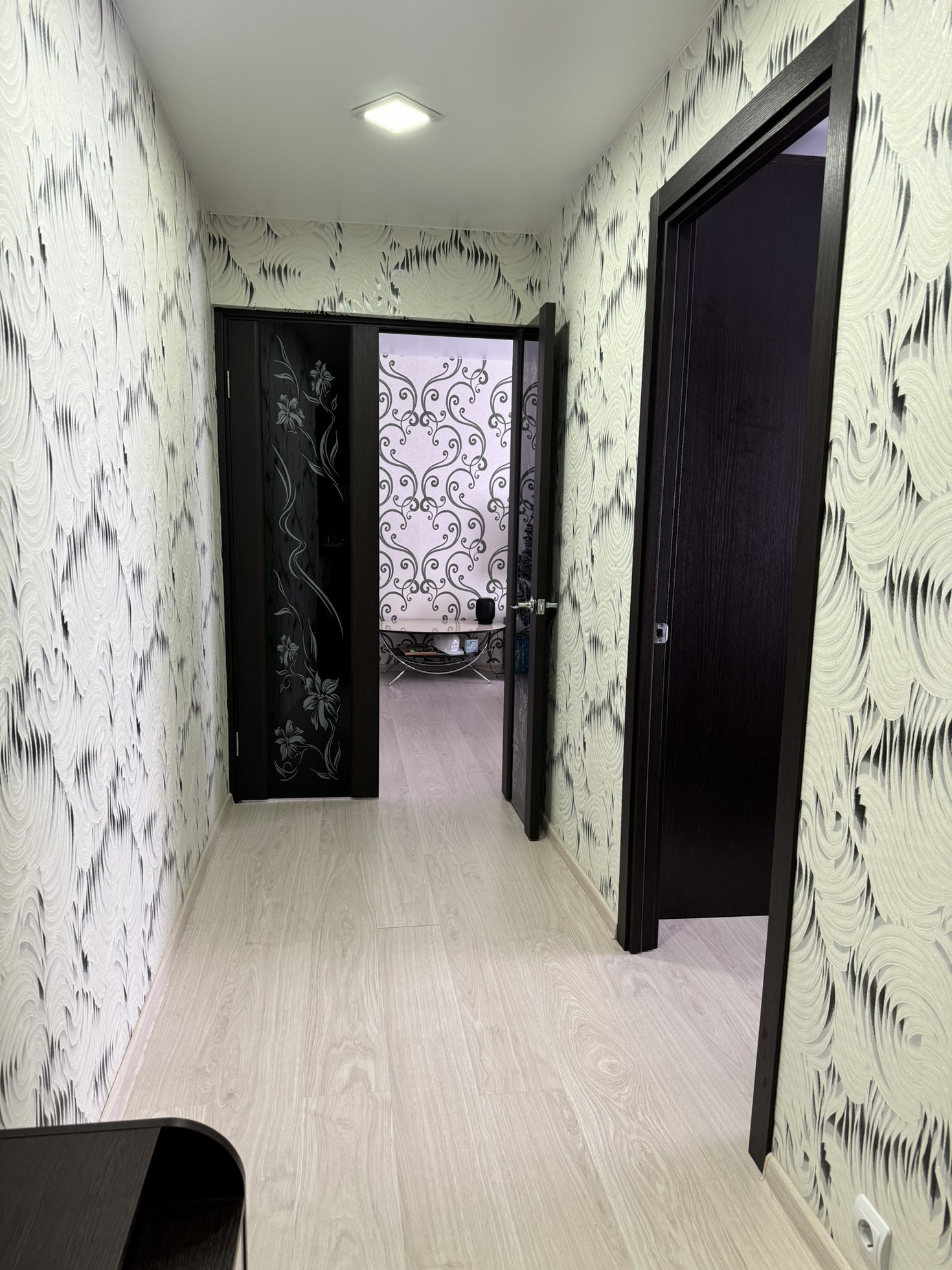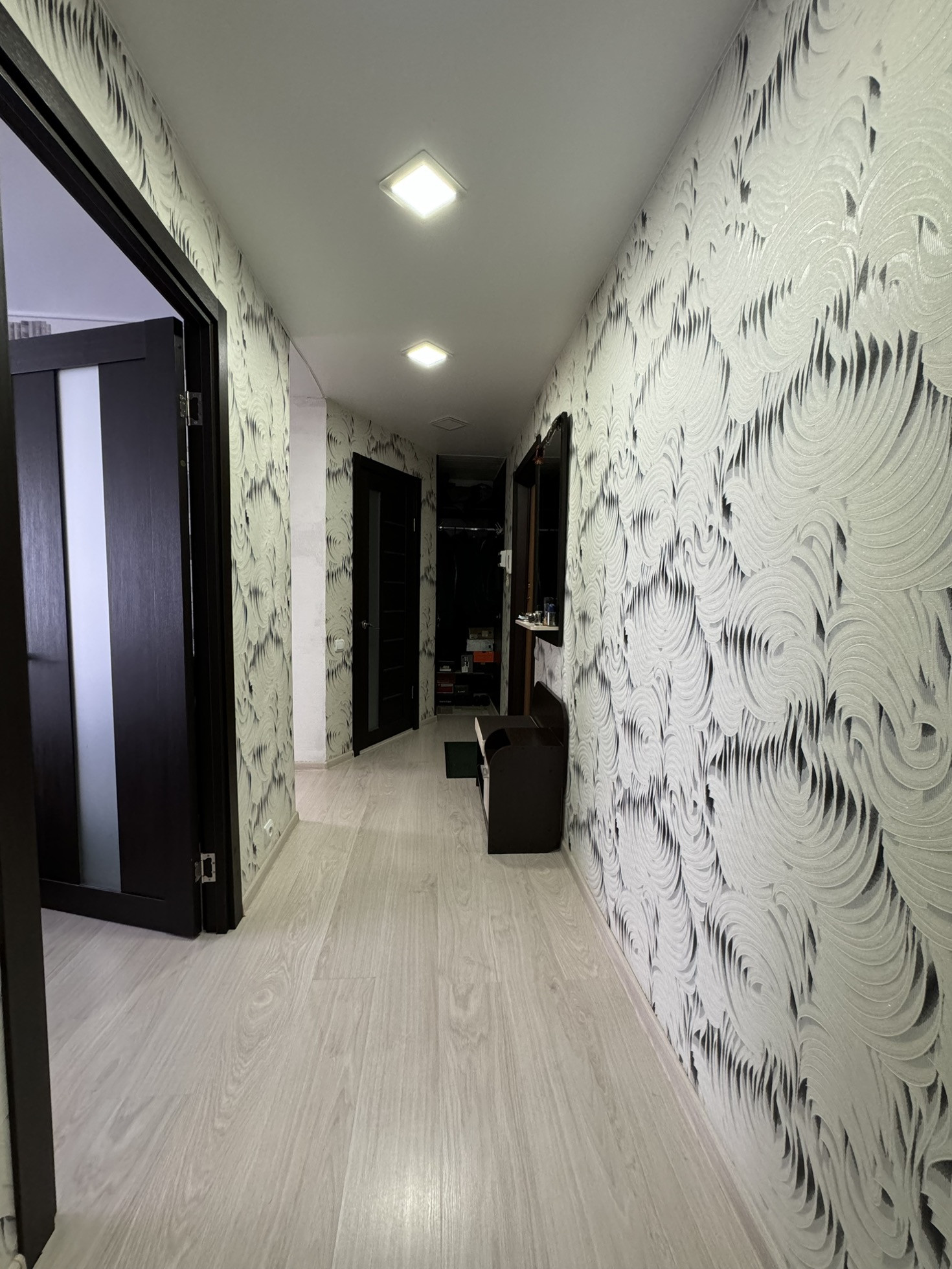 В квартире выполнен качественный ремонт. На полу ламинат, произведена стяжка пола, стены выровнены, заменена электропроводка, натяжные потолки. Санузел в кафеле, оборудован всем необходимым.