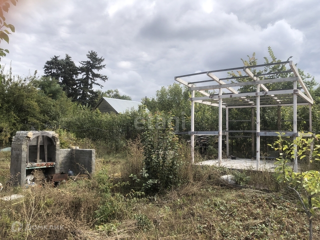 На участке выстроен каркас деревянной беседки, заложен фундамент 6x6 для нового дома, растет много плодовых растений: абрикосы - 4 дерева, яблони - 5 деревьев, груша - 2 дерева, слива - 5 деревьев, торон - 3 дерева, боярышник, виноград, малина, смородина черная и красная, крыжовник, клубника, черемуха, жасмин.
