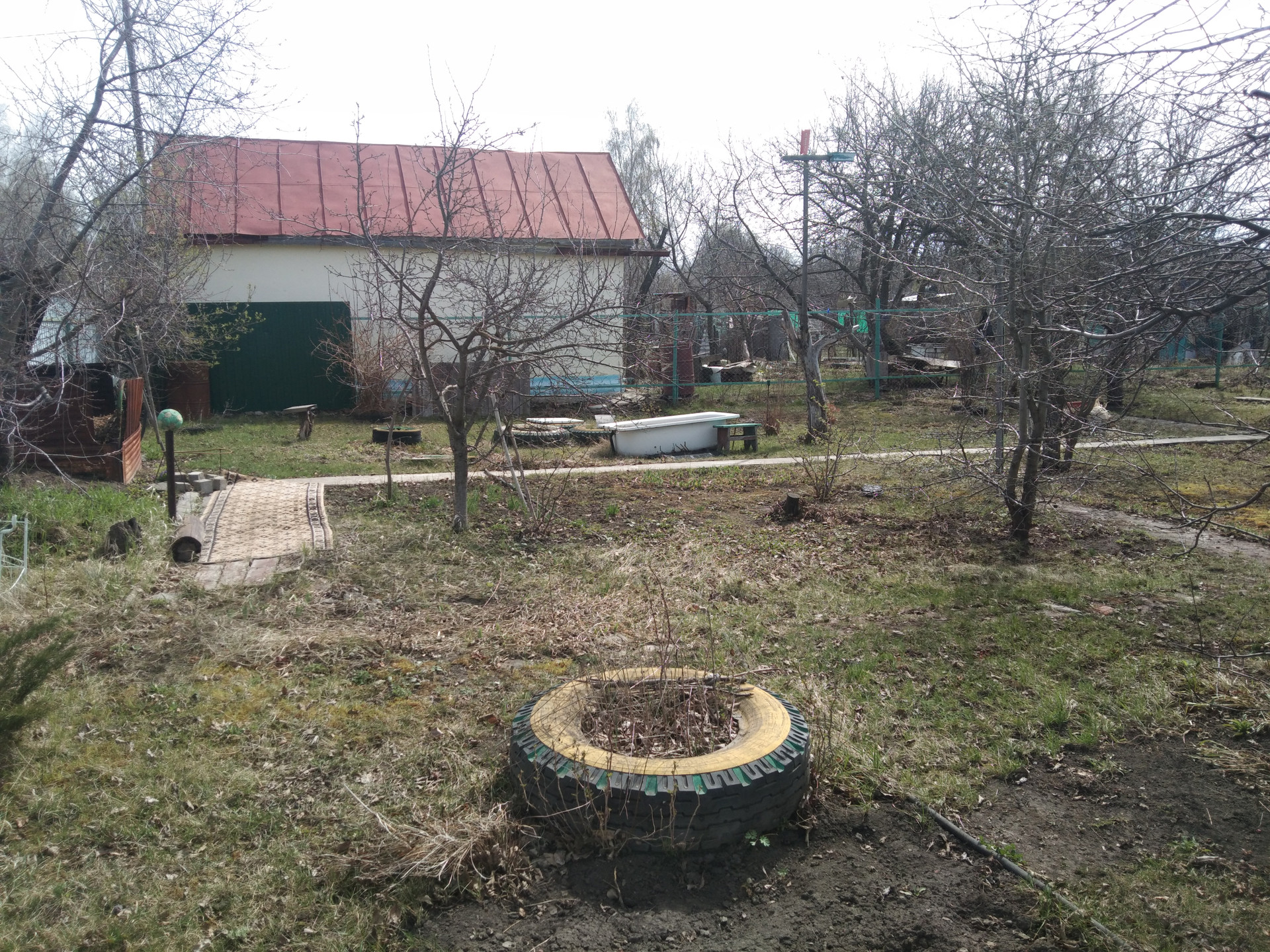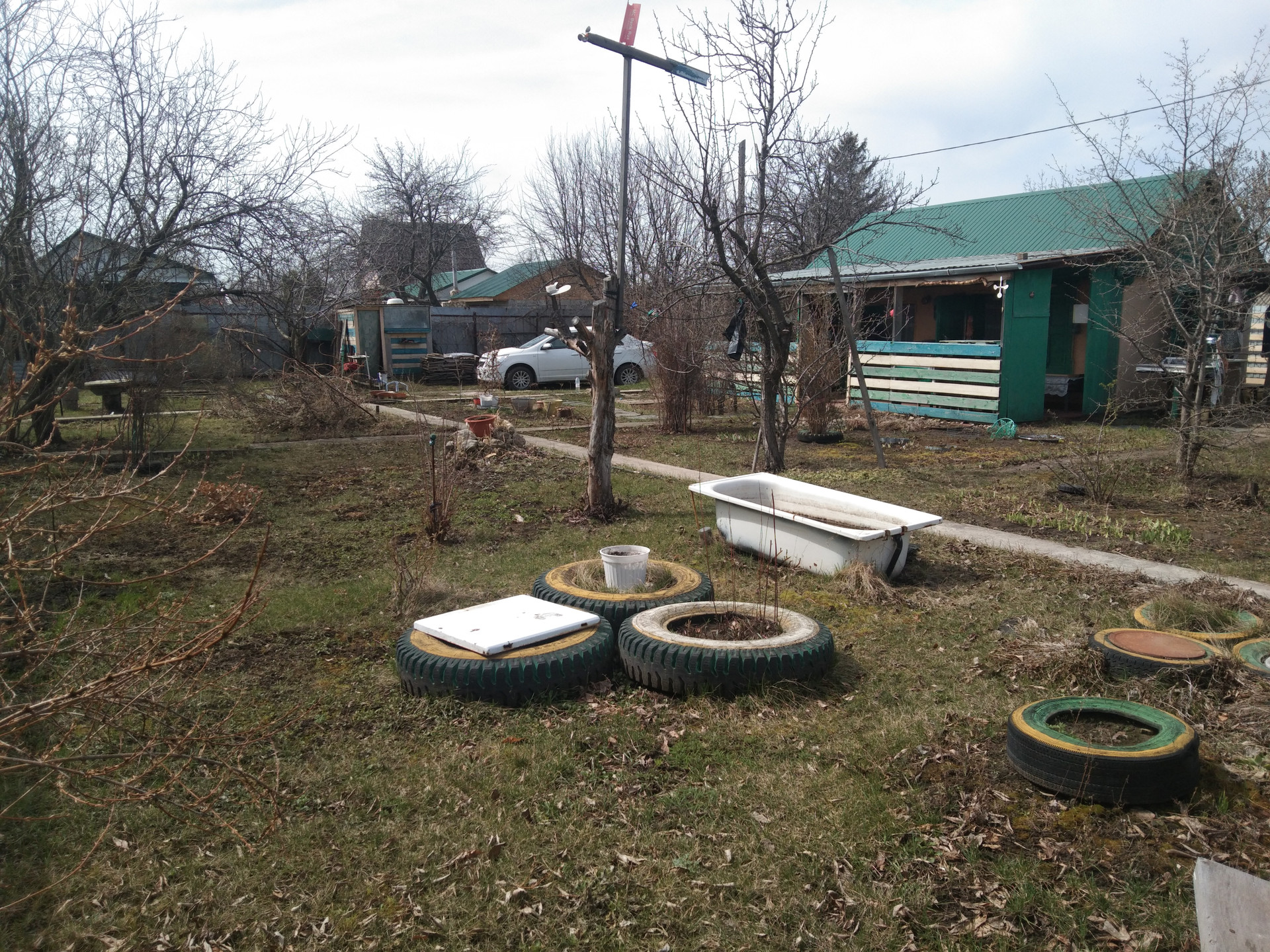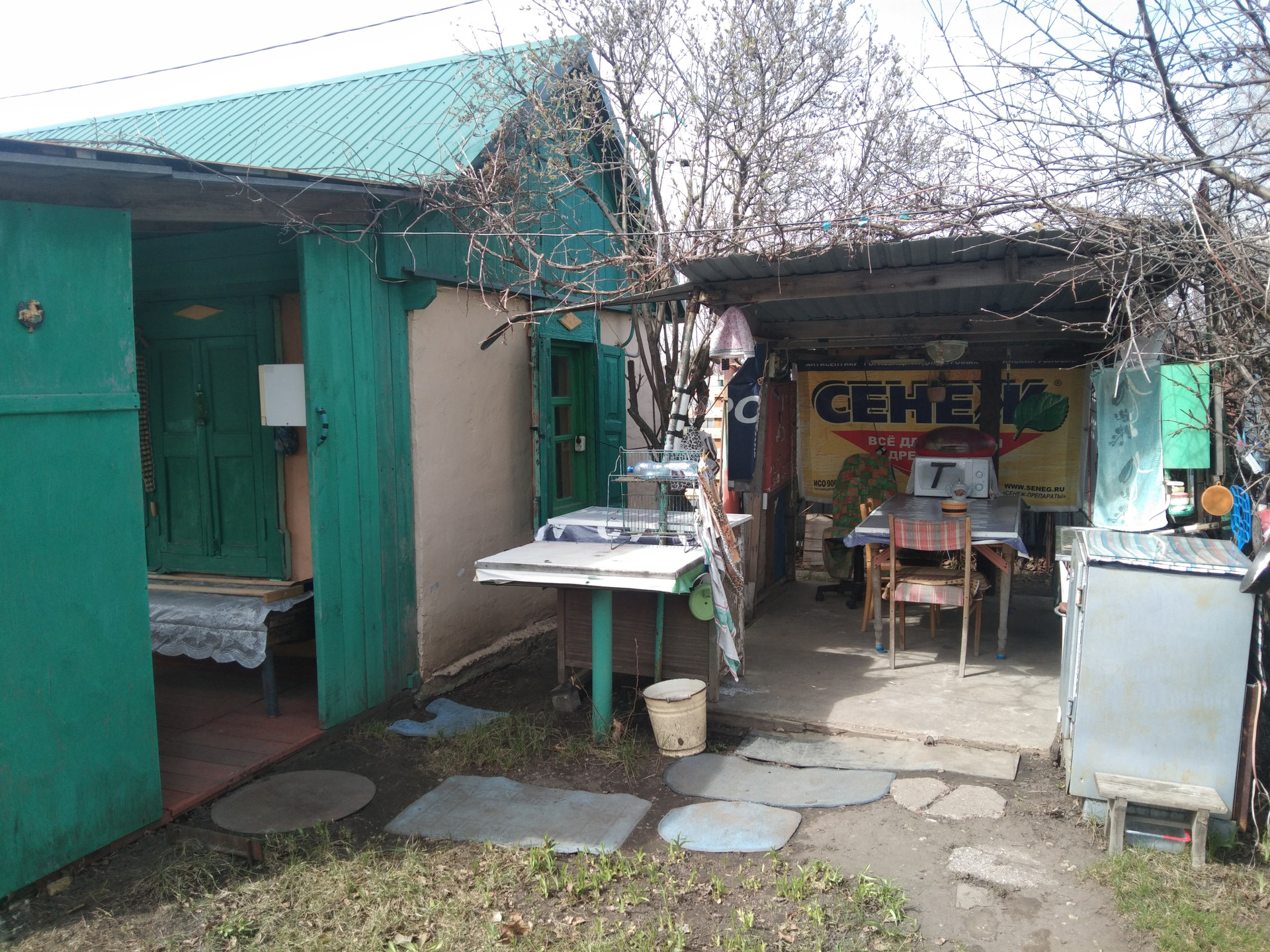 - Зона отдыха: вымощенная плиткой площадка, навес, ящики для хранения посуды, раковина для мытья посуды, подведена вода и слив. Очень удобно.