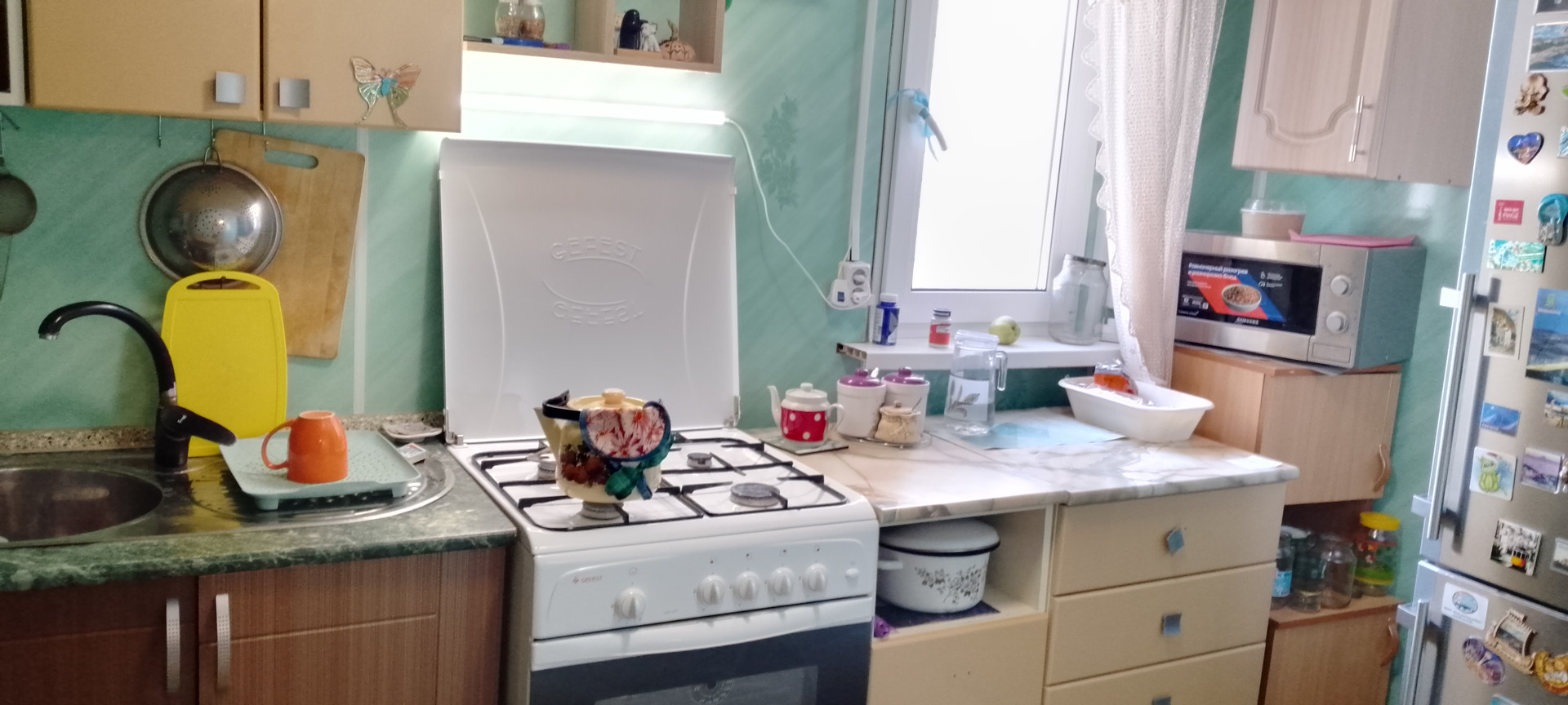 Удачное расположение дома :рядом школы, садики, сетевые магазины.