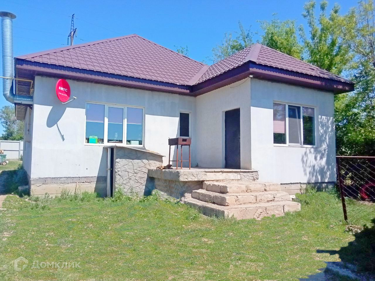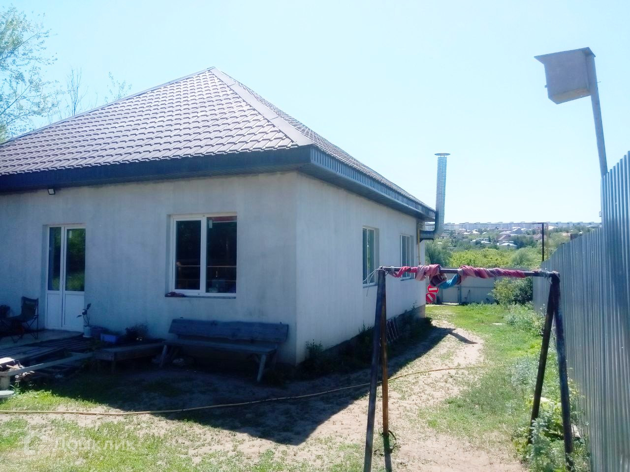 Арт. 70784517 Одноэтажный жилой дом, общей площадью 117 м² с баней из сруба на земельном участке 13 сот. Территория жилого дома огорожена забором из металлопрофиля.