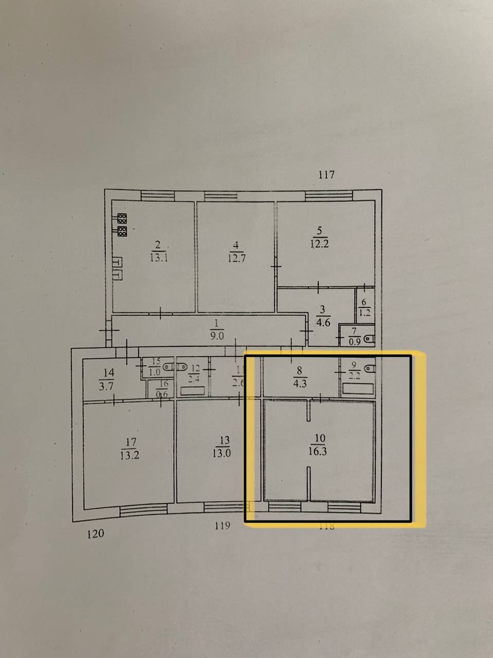 Жилая площадь 16.3 м2
