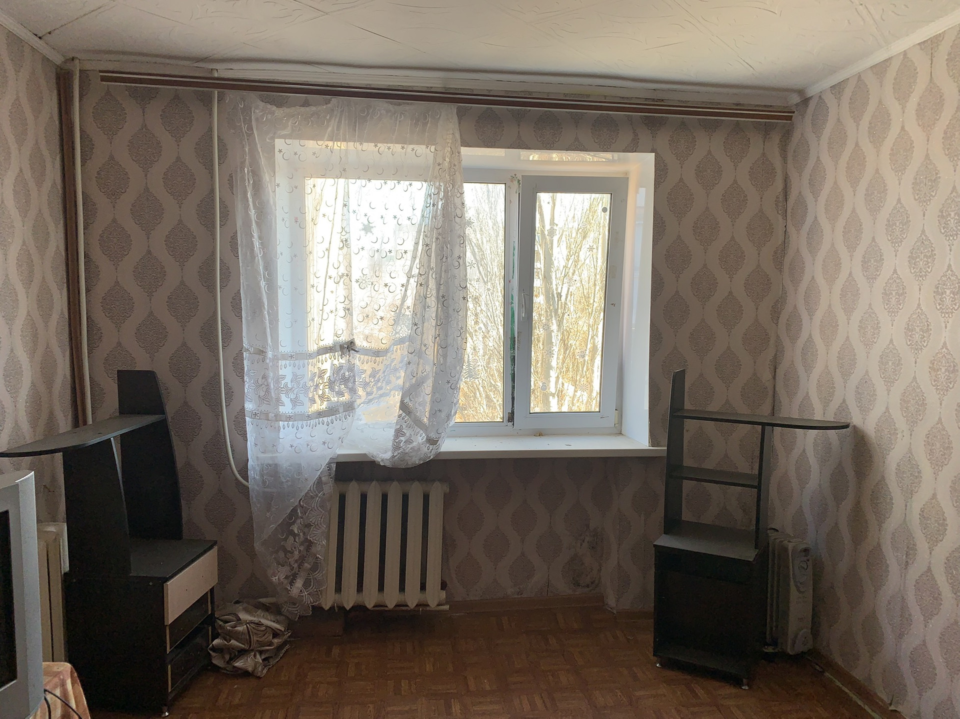 В комнате установлено пластиковое окно.