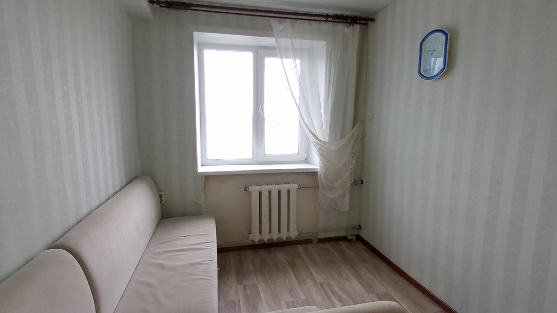Площадь этой уютной комнаты составляет 13 м2. В комнате выполнен хороший ремонт. Оконный блок ПВХ, натяжные потолки, новая электропроводка, на полу добротный линоулеум, новые полипропиленовые стояки, чугунный радиатор отопления, входная дверь металлическая.