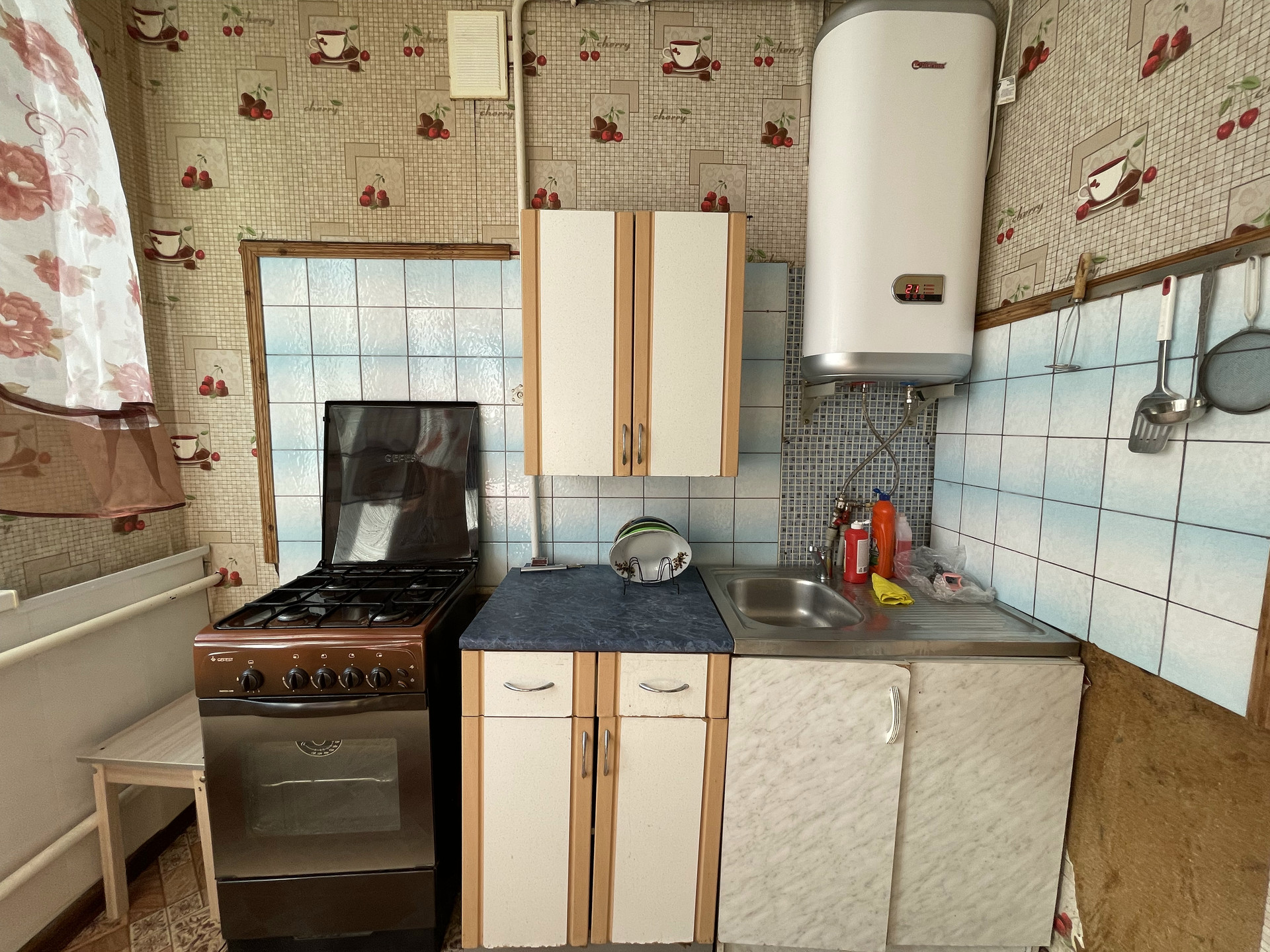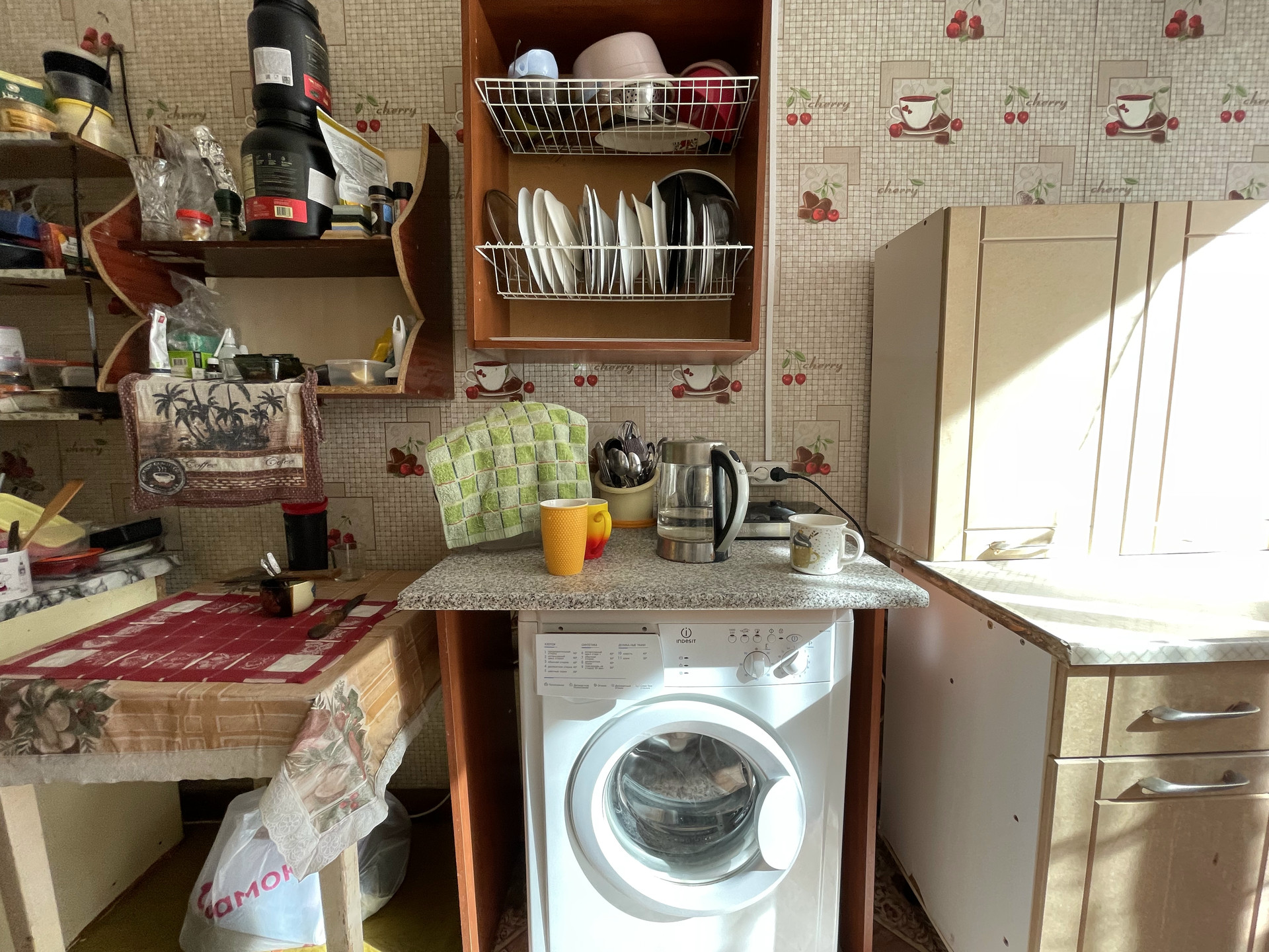 Общие места: раздельный санузел, ванна-душевая, газовая плита, горячая вода - водонагреватель 75 литров, личный столик и шкафчик на кухне и стиральная машина.