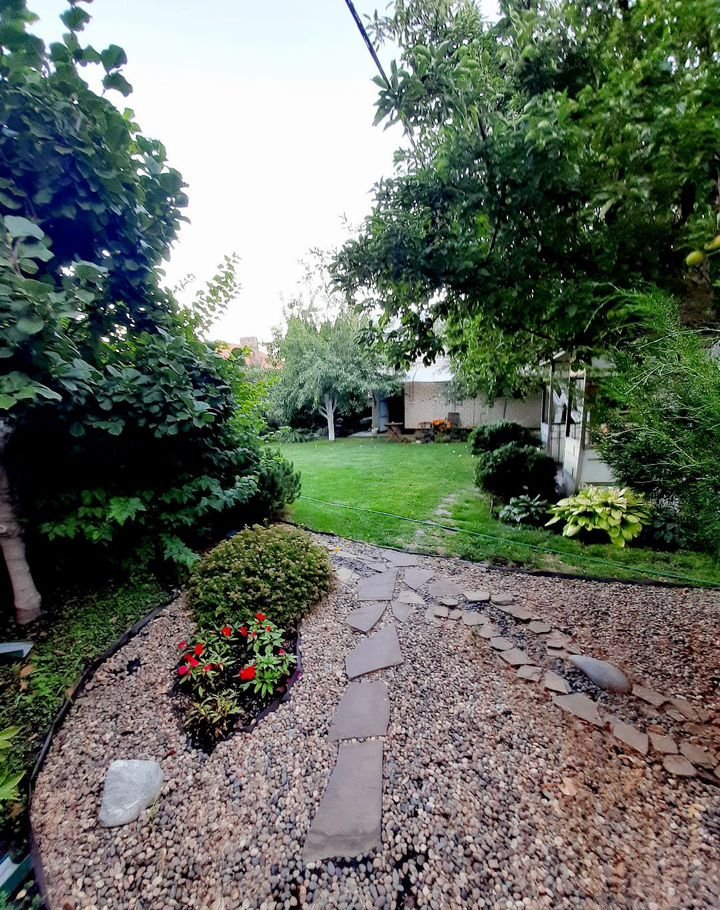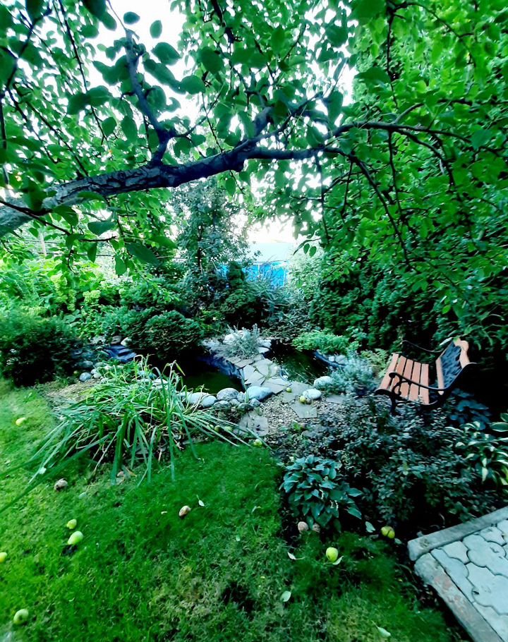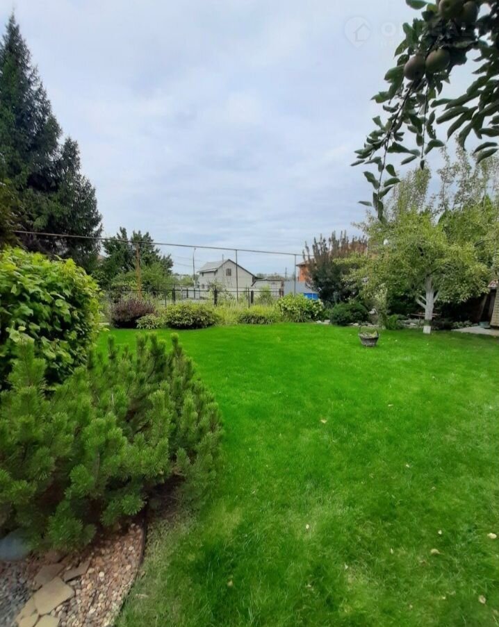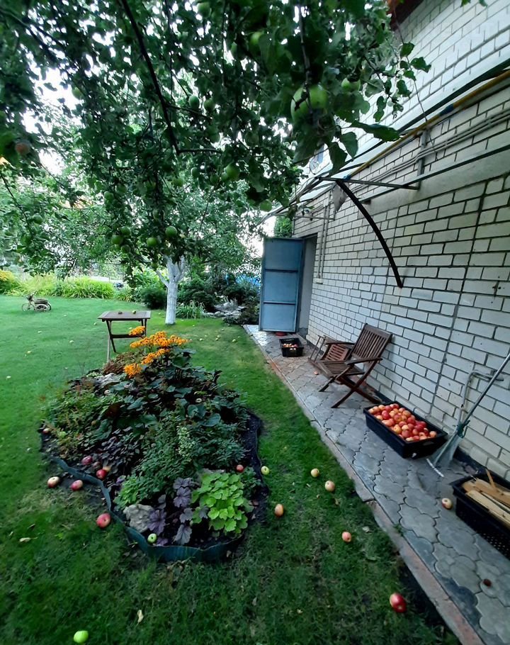 Благоустроенный земельный участок с элементами ландшафтного дизайна - английсий газон, большое количество декоративных растений, цветов, плодоносящих деревьев и кустарников, имеет зону барбекю, есть летняя кухня, хоз.постройки, место для летнего бассейна, для парковки автомобиля.