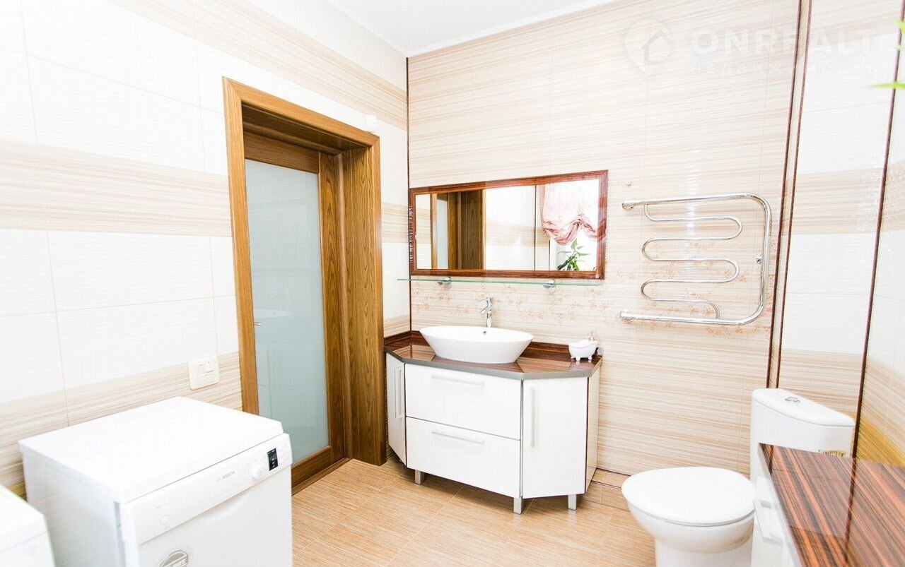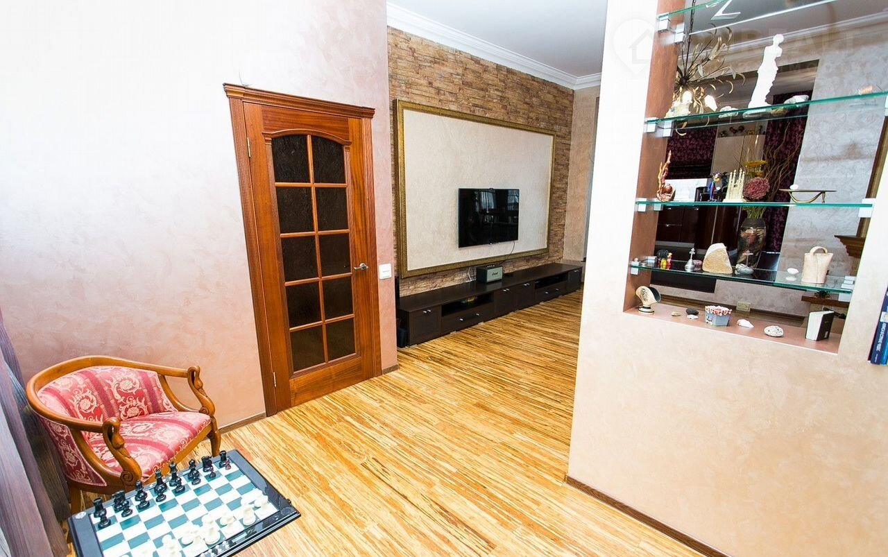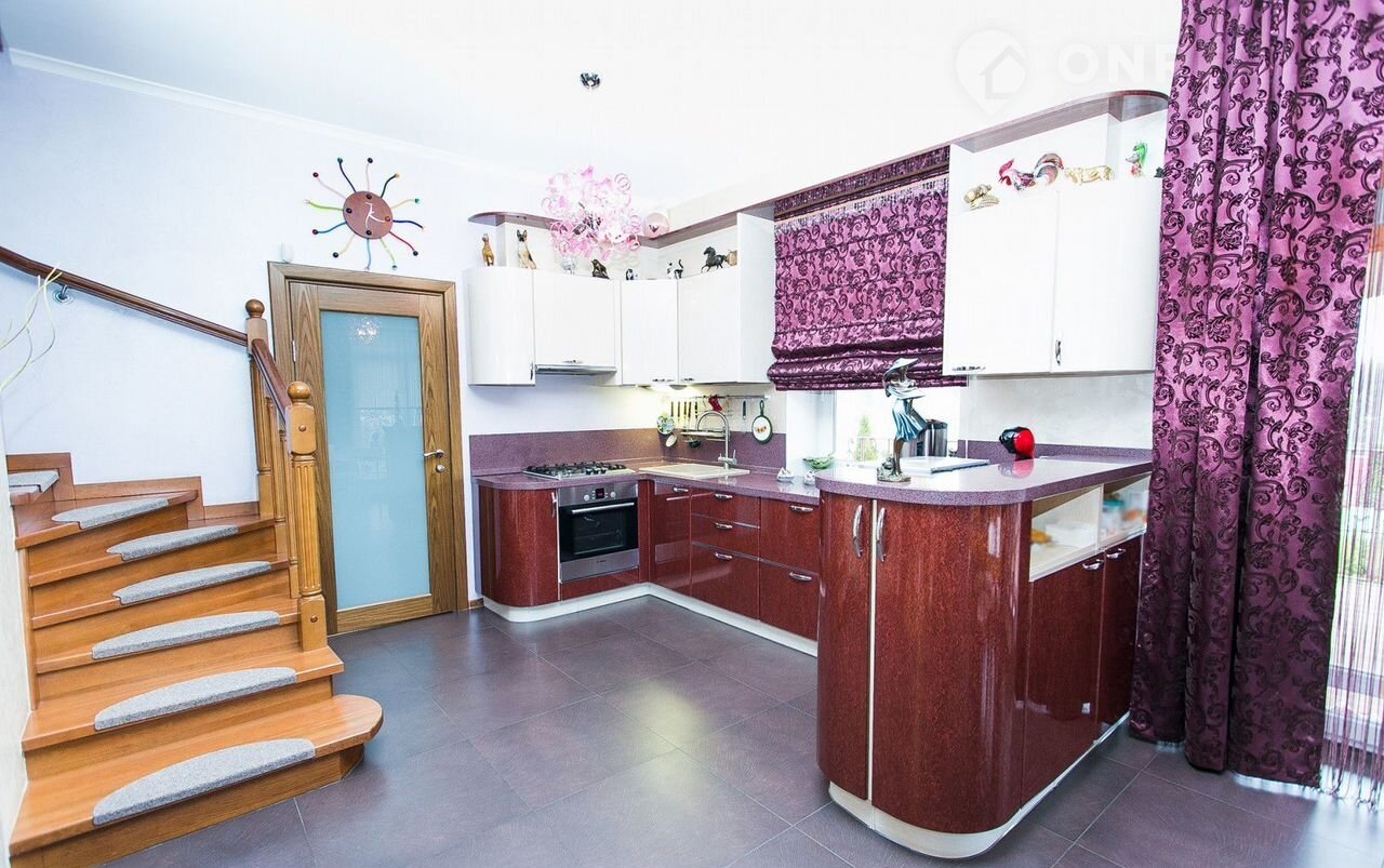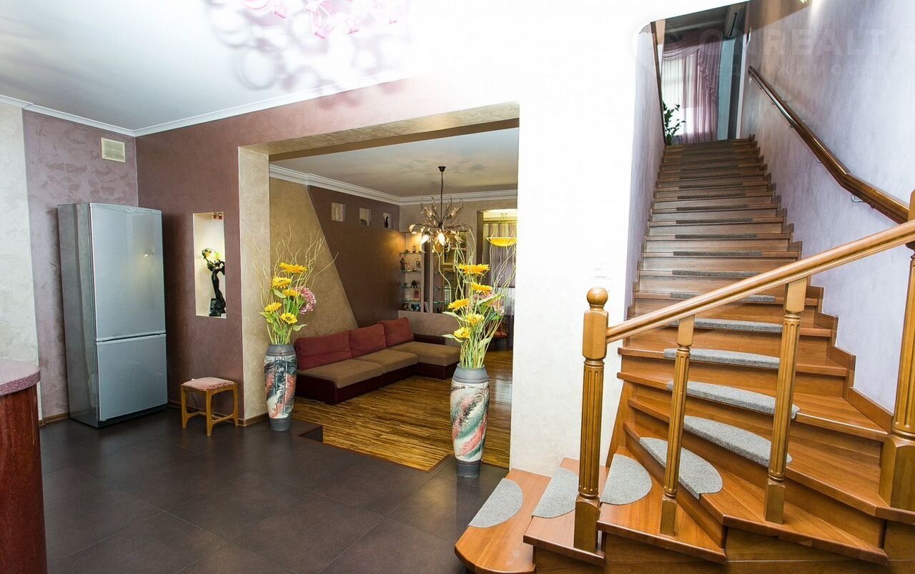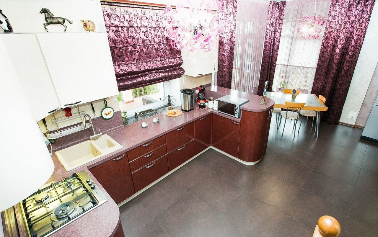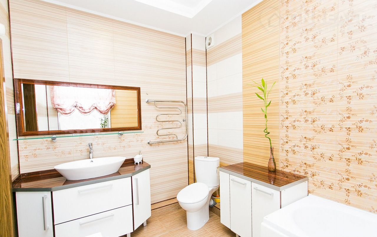 Внутренняя отделка выполнена в едином стиле, разработанном хорошим дизайнером, с применением высококачественных строительных материалов. В едином стиле подобрана мебель, приборы освещения и сантехника.