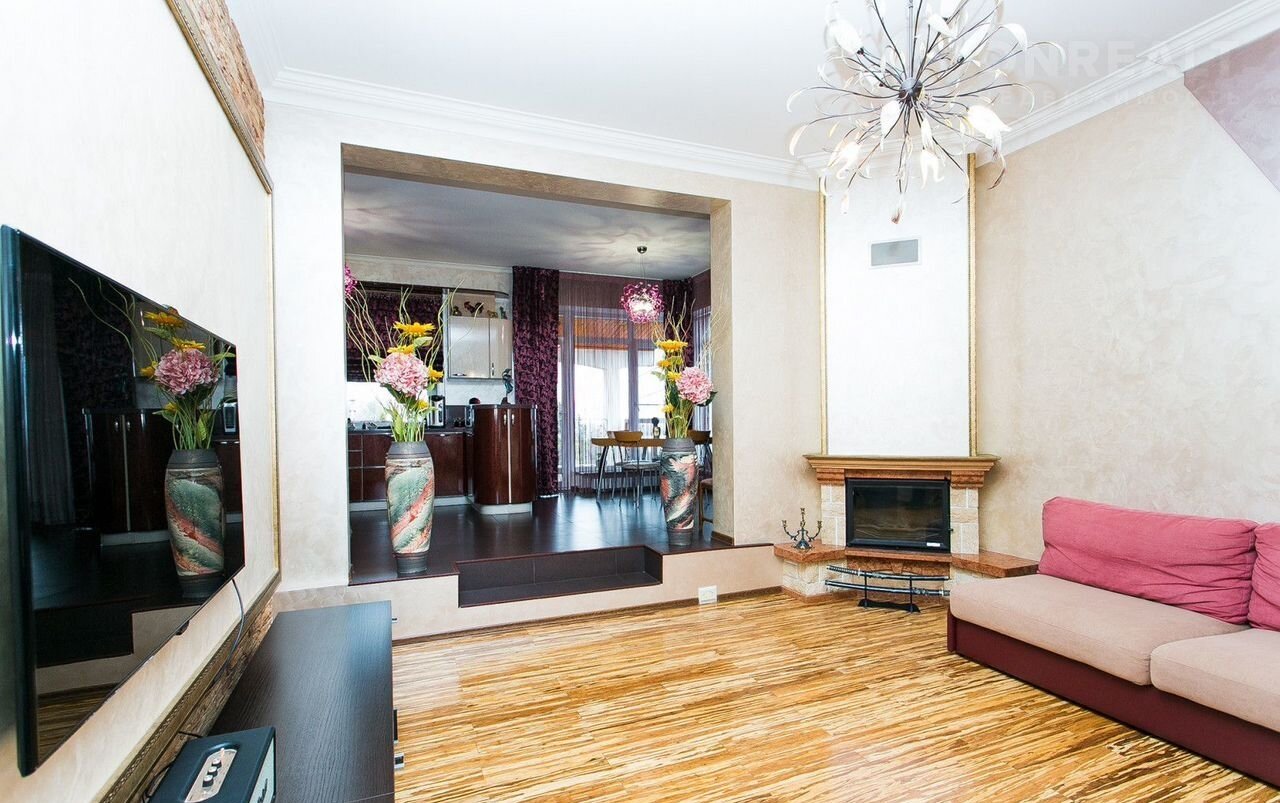 На первом этаже находятся прихожая, просторная гостиная с действующим камином, кухня-столовая с выходом на террасу, откуда открывается чудесный вид на Волгу и сад, а также гостевой санузел.
