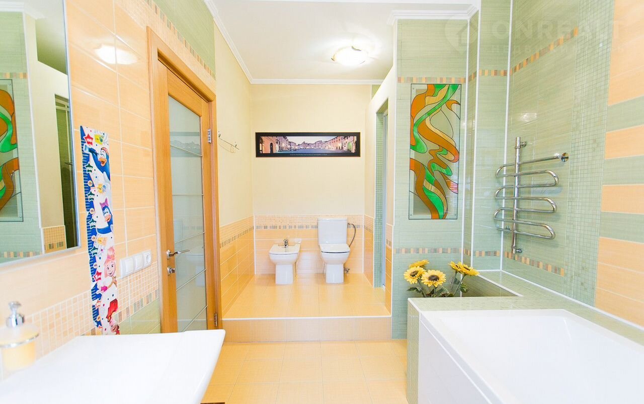 На втором этаже – две просторные уютные спальни, большая гардеробная комната и ванная комната. Из окон живописный вид на Волгу.