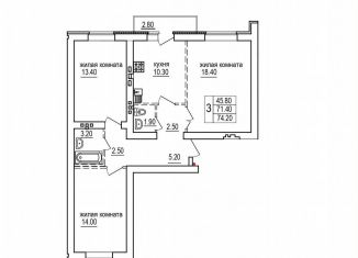 Продажа 3-комнатной квартиры, 74.2 м2