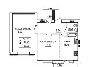 Продается 2-комнатная квартира, 56.2 м2