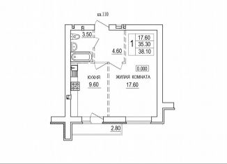 Однокомнатная квартира на продажу, 38.1 м2