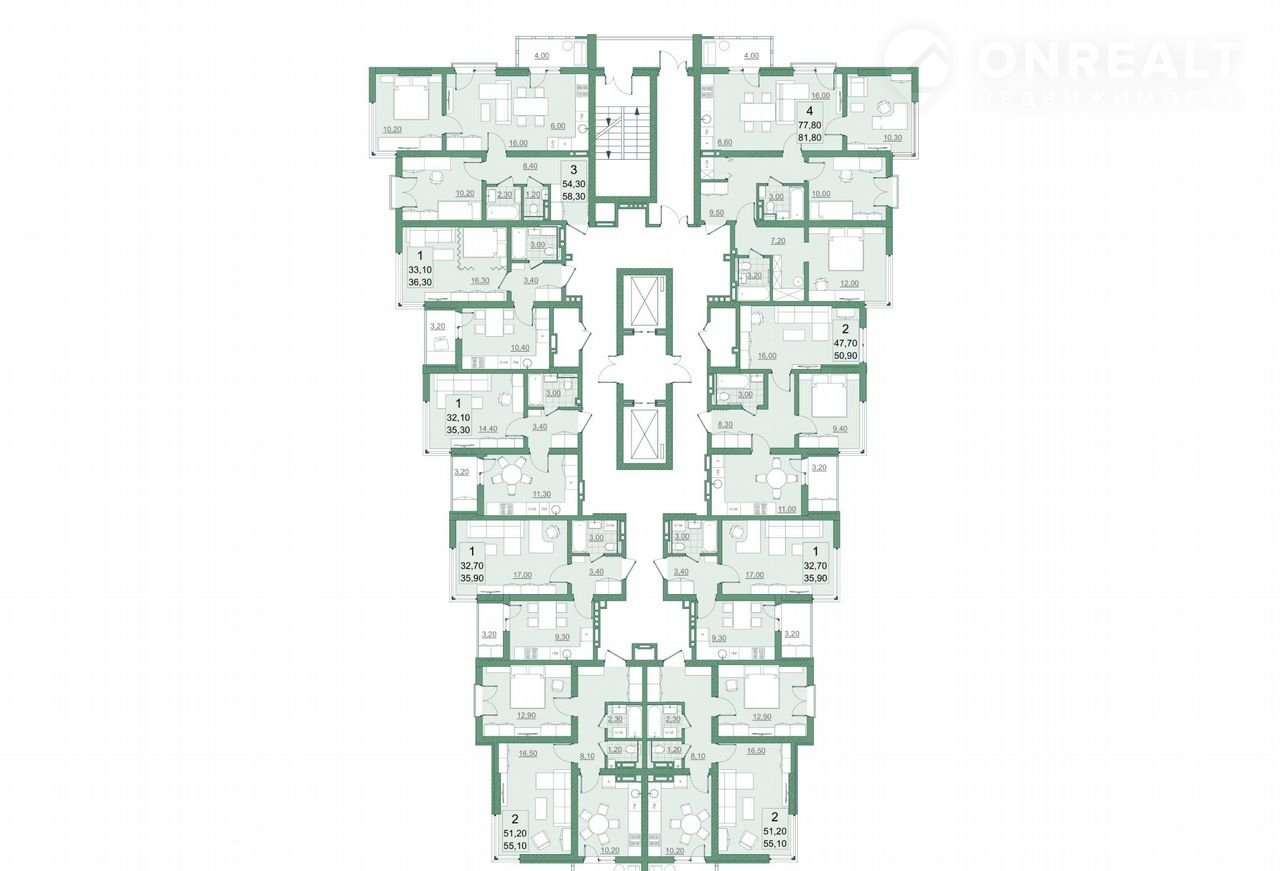 Общая площадь 51.2 м2