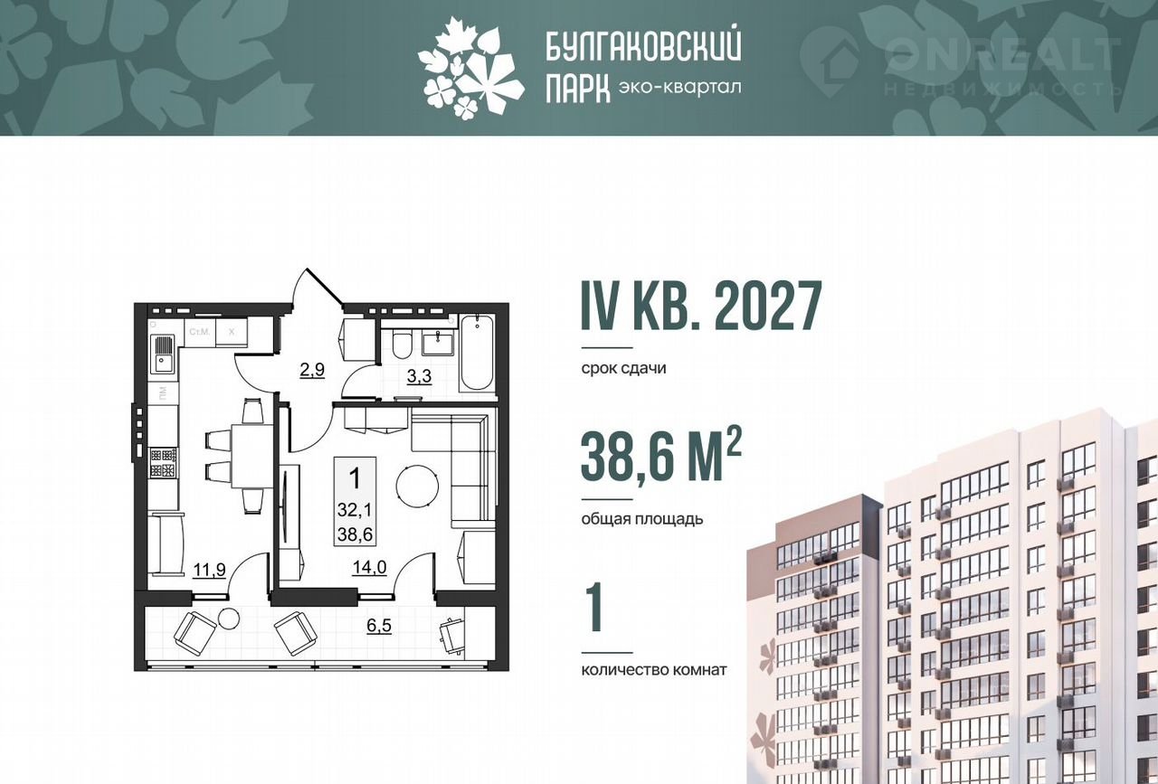 Жилaя кoмнатa 14 м2 - здeсь кoмфортнo pacпoлoжится диван или кровaть, ТB-зона с игровой приставкой, место под шкаф или комод. Комната светлая, с выходом на просторную лоджию 6,5 м2 - широкое остекленное пространство вдоль всей квартиры. Отлично подойдет для зоны отдыха, мини-кабинет или даже для хранения вещей. Полноценная кухня 11,9 м2 с продуманной рабочей зоной со всей необходимой техникой и местом под обеденный стол.