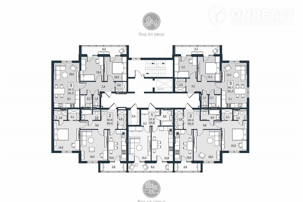 Днeвная зона oтдeленa oт спaлeн, чтo cоздаeт привaтнoсть и cнижаeт уpoвeнь шума в зонах отдыха. Такое зонирование особенно удобно для семей с детьми, или если кто-то работает из дома. Кухня-гостиная 16 м² - отличный вариант для семьи и приема гостей, здесь легко разместится полноценный обеденный стол, диванная зона и ТВ. Планировка позволяет гибко расставить мебель и зонировать пространство. Обе жилые комнат 10,3 м² и 10,4 м² изолированы - это важно для комфорта: каждый член семьи имеет личное пространство. Одна спальня идеально подойдет под детскую или, если пока вы живете вдвоем, под кабинет. Остекленная лоджия 6,2 м² - редкое и удачное решение, два выхода делают ее более функциональной. Можно обустроить зону отдыха, оранжерею или спортивный уголок. Полноценная гардеробная избавляет от необходимости ставить громоздкие шкафы. Можно использовать для хранения сезонных вещей, бытовой химии, пылесоса и прочее. Холл 8м2 грамотно распределяет потоки между зонами квартиры.
