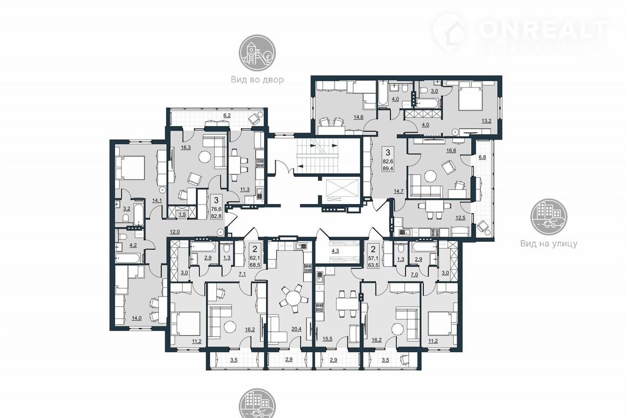 Кухня 12,5 м2 организована по принципу "рабочего треугольника": удобно готовить, все находится под рукой. Есть место под полноценный кухонный гарнитур, посудомоечную машину и шкафы для хранения. Рядом размещается обеденная зона, где можно устраивать ужины с друзьями или семейные завтраки без тесноты. Гостиная 16,6 м2 легко вмещается большой диван, ТВ-зону, кресла и кофейный столик. Это комфортная зона отдыха, где вся семья собирается вечером, чтобы расслабиться. А благодаря просторной остекленной лоджии 6,8 м2 с выходами в гостиной и на кухне в комнатах всегда будет много дневного света и воздуха. Мастер-спальня 13,2 м2 с собственным санузлом и гардеробной находится в глубине квартиры и обеспечивает приватность. Здесь удобно разместить двуспальную кровать, прикроватные тумбы и вместительный шкаф. Вторая спальня 14,6 м2 просторная, с широкой оконной зоной подойдет как детская, комната подростка, домашний кабинет или гостевая спальня. Просторной холл 14,7м2 удобно зонируется: можно установить дополнительные системы хранения, шкафы-купе или открытые полки.