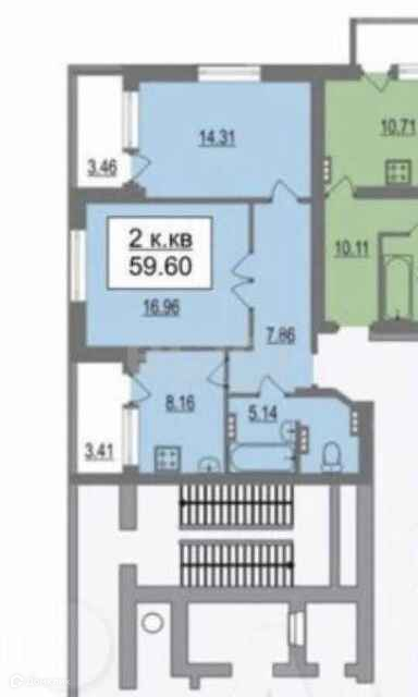Общая площадь 53.5 м2