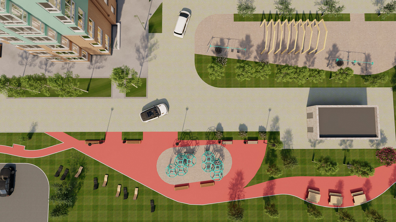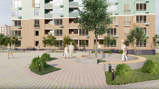 Придомовая территория разработана с учетом потребностей как взрослых, так и детей. Предусмотрены развивающая детская площадка для всех возрастов и спортивная площадка с безопасным покрытием. Сам дом находится на первой линии бульвара Героев Отечества, где каждый найдет себе занятие по душе.