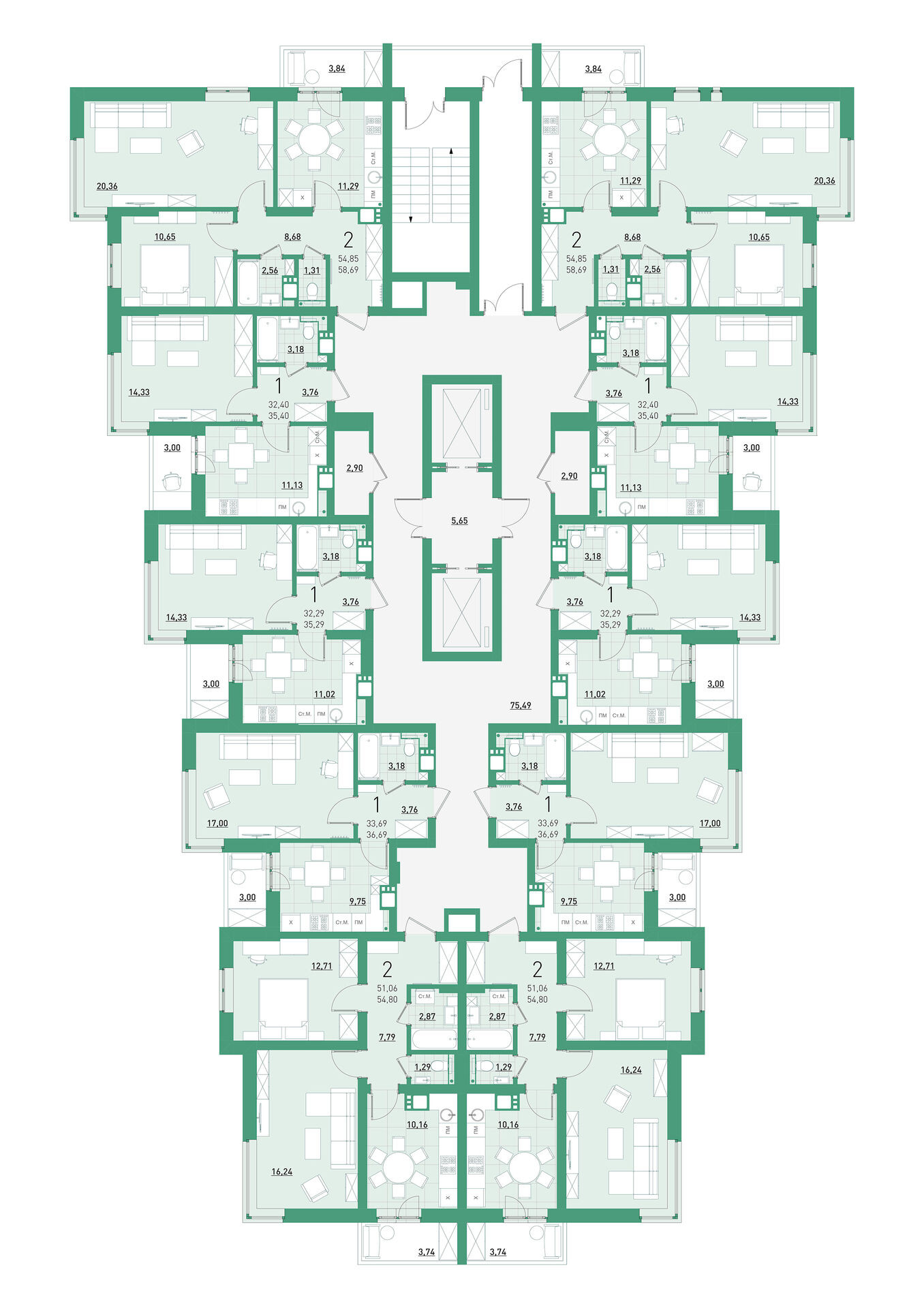 Общая площадь 54.6 м2