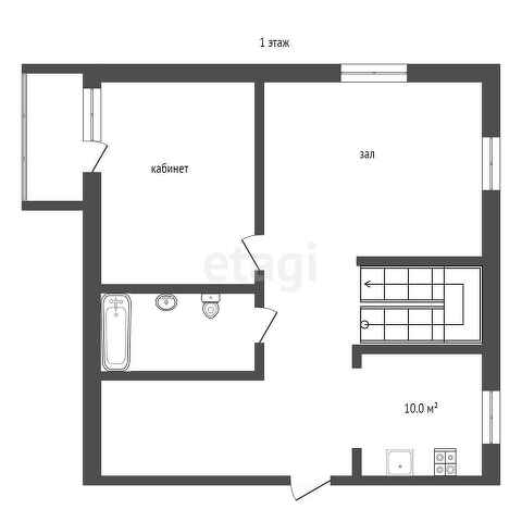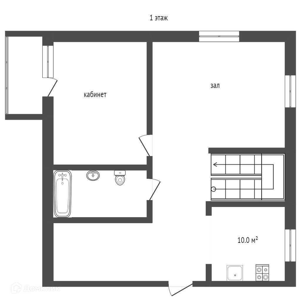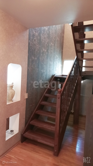 На первом этаже квартиры расположены просторная прихожая, сан/узел, уютная кухня, кабинет с библиотекой, гостиная. На второй этаж квартиры ведет итальянская лестница из массива дерева.