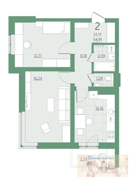 Общая площадь 49.5 м2