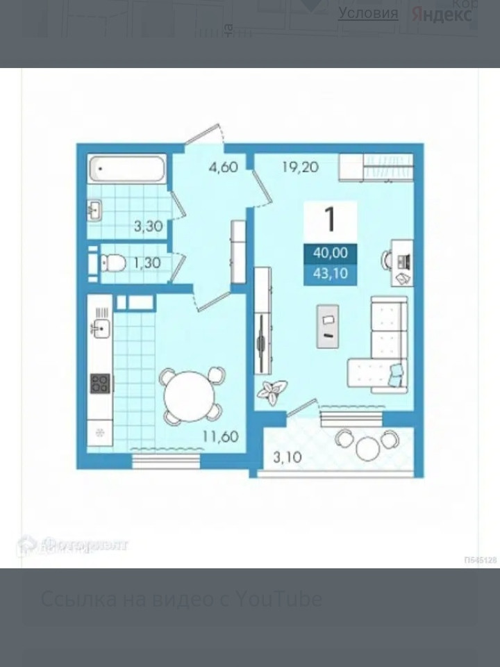 Общая площадь 43.1 м2
