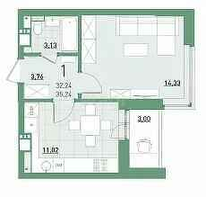 Продается 1 комнатная квартира на 19 этаже площадью 35,2 м2 свободной планировки.