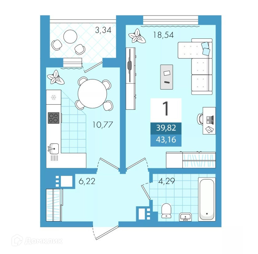 Общая площадь 43.16 м2