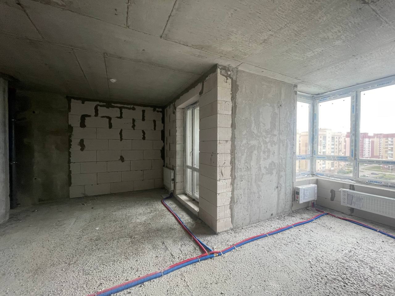 * проведена лучевая разводка горячей воды и отопления