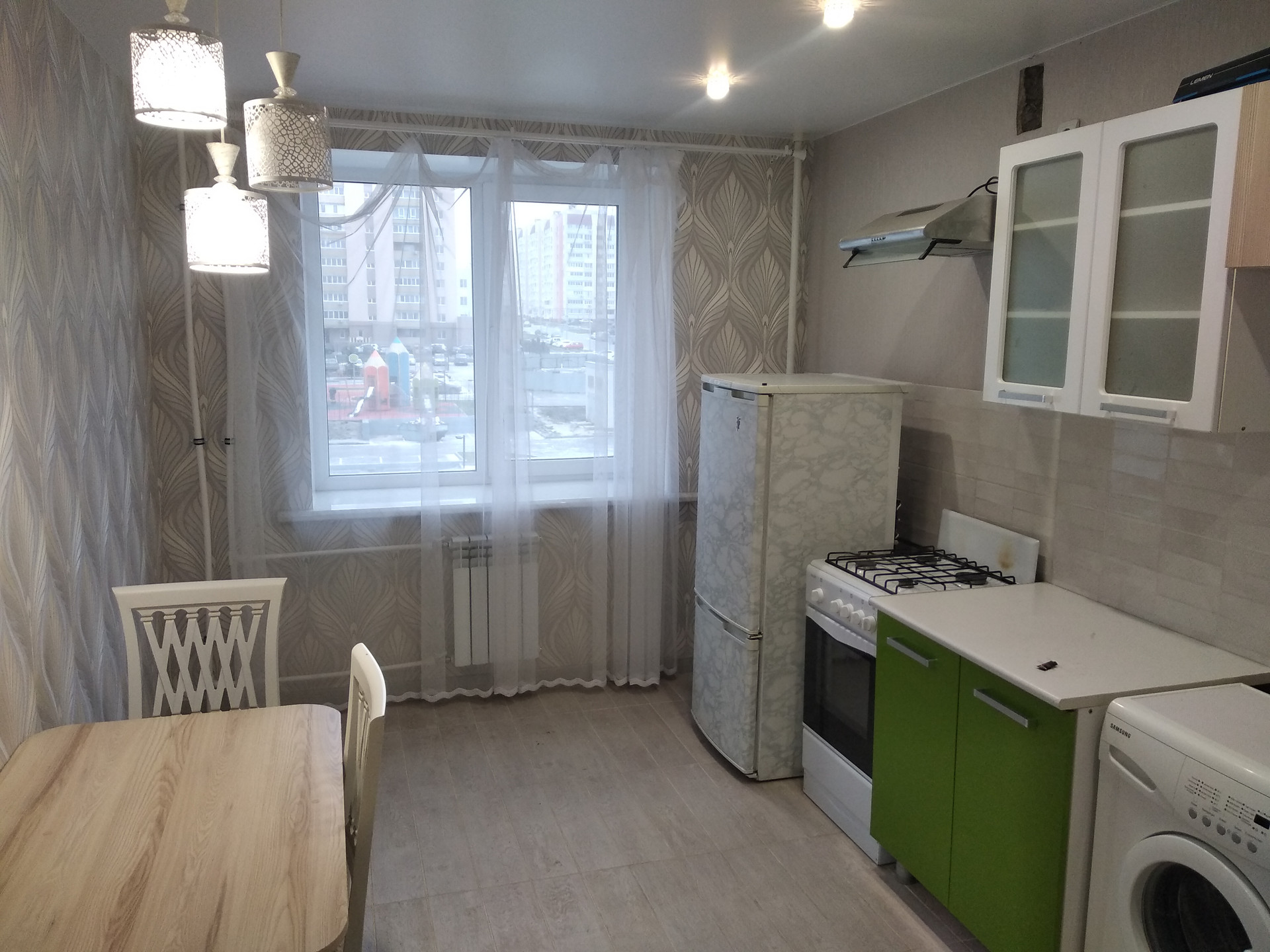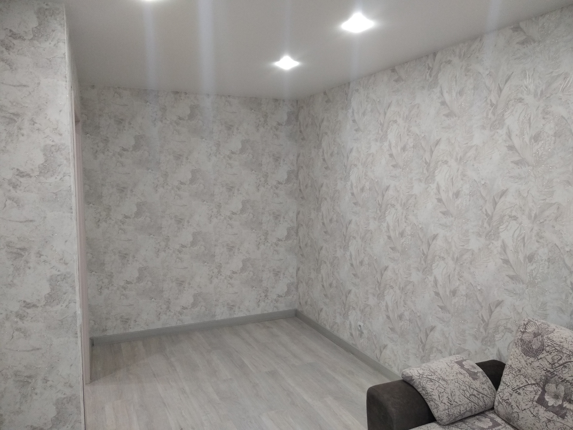 В квартире выполнен современный качественный евроремонт. Использовались дорогие материалы :на полу ламинат 33 класса, натяжные потолки с точечными светильниками, распределение света по зонам..