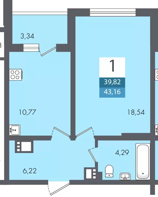 Общая площадь 43.16 м2