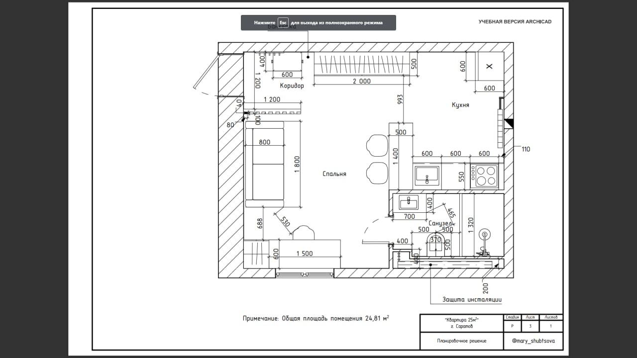 Общая площадь 23.6 м2