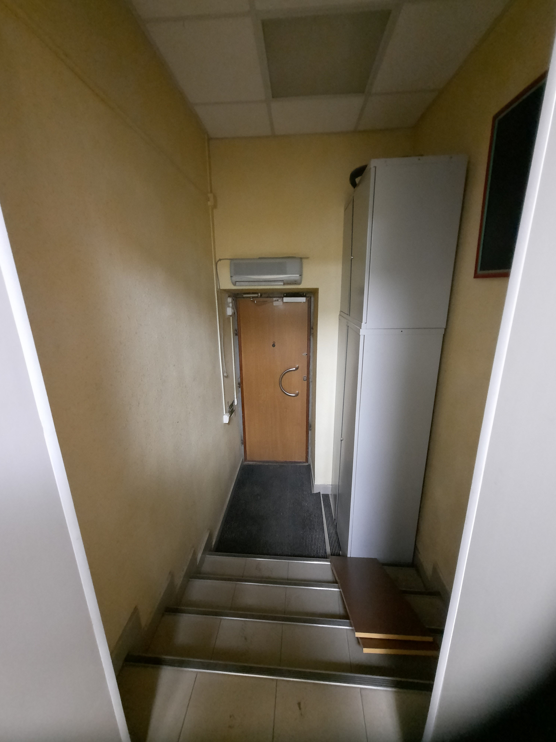 Этаж высокий, окно пластиковое с решеткой.