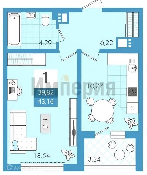 Общая площадь 43.2 м2