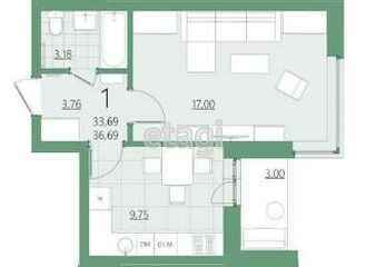 Квартира на удобном 4-ом этаже. Площадь квартиры 36,69 кв.м.