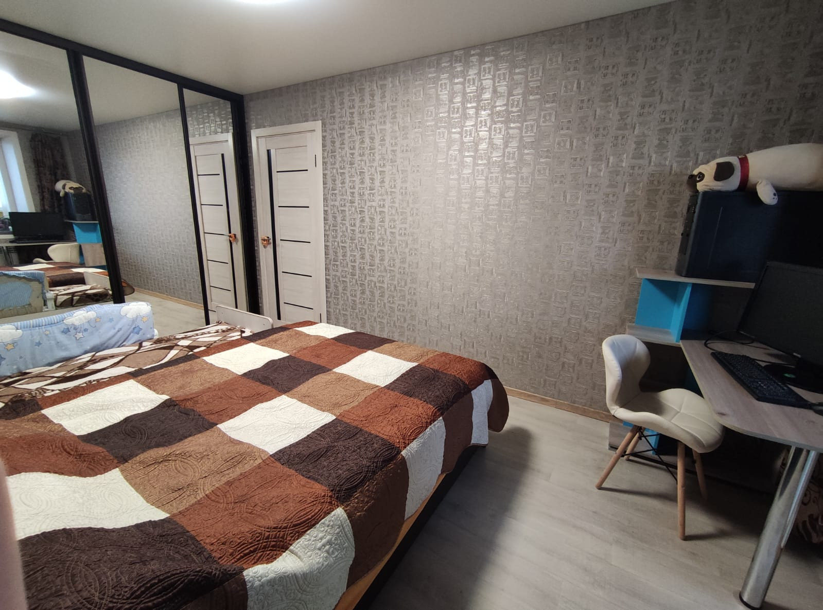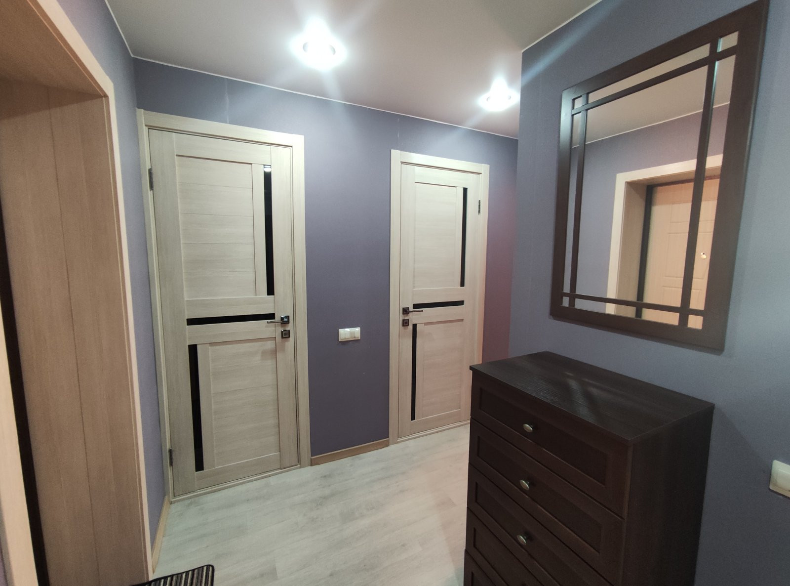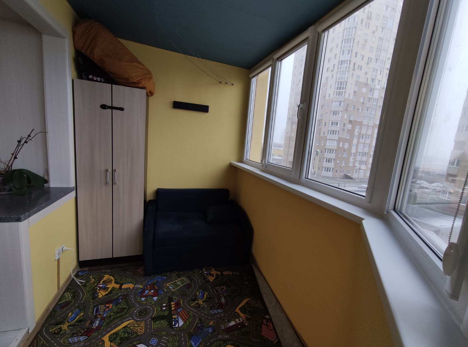 Пластиковые окна, утепленная лоджия с инфракрасным полом, во всей квартире постелен качественный коммерческий линолеум.