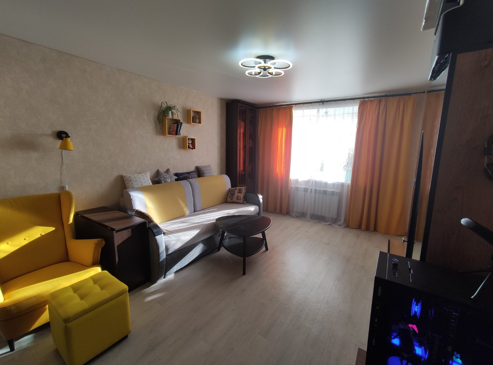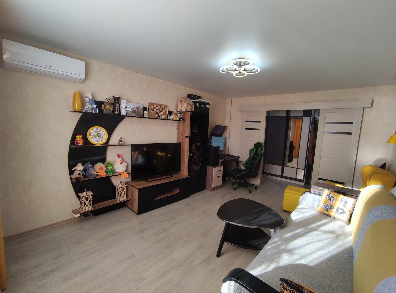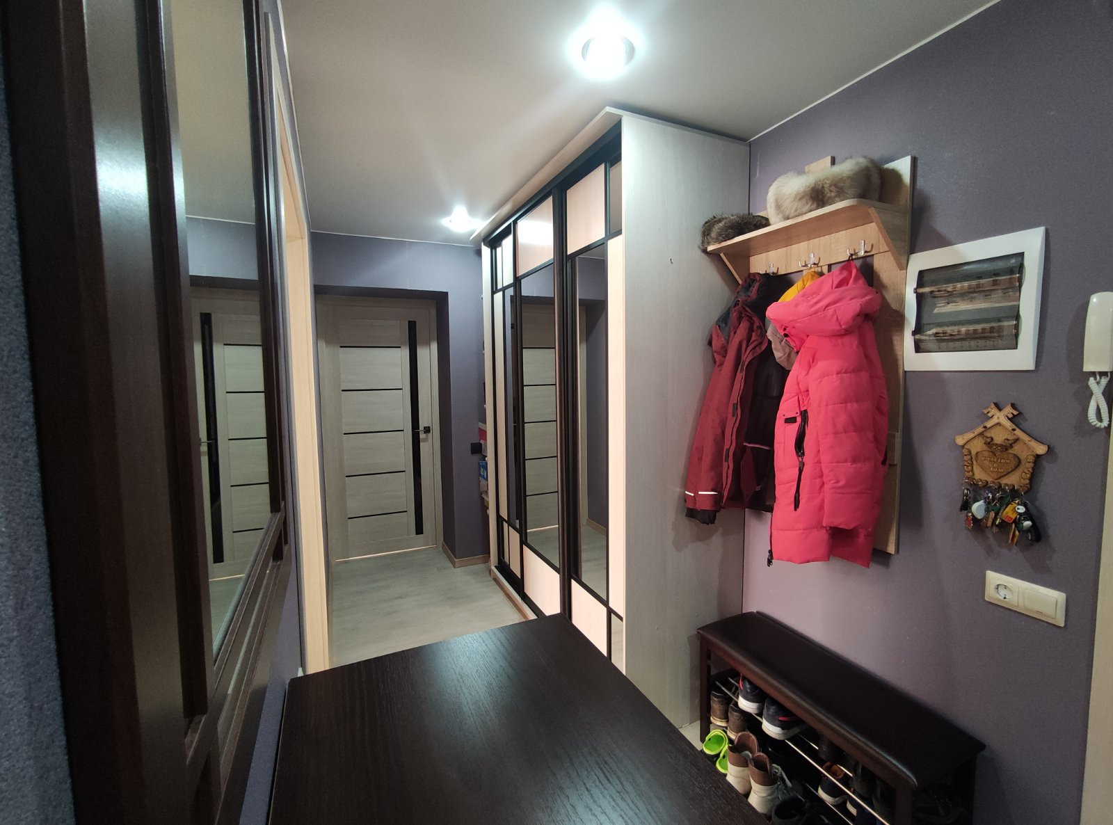 Пластиковые окна, утепленная лоджия с инфракрасным полом, во всей квартире постелен качественный коммерческий линолеум.