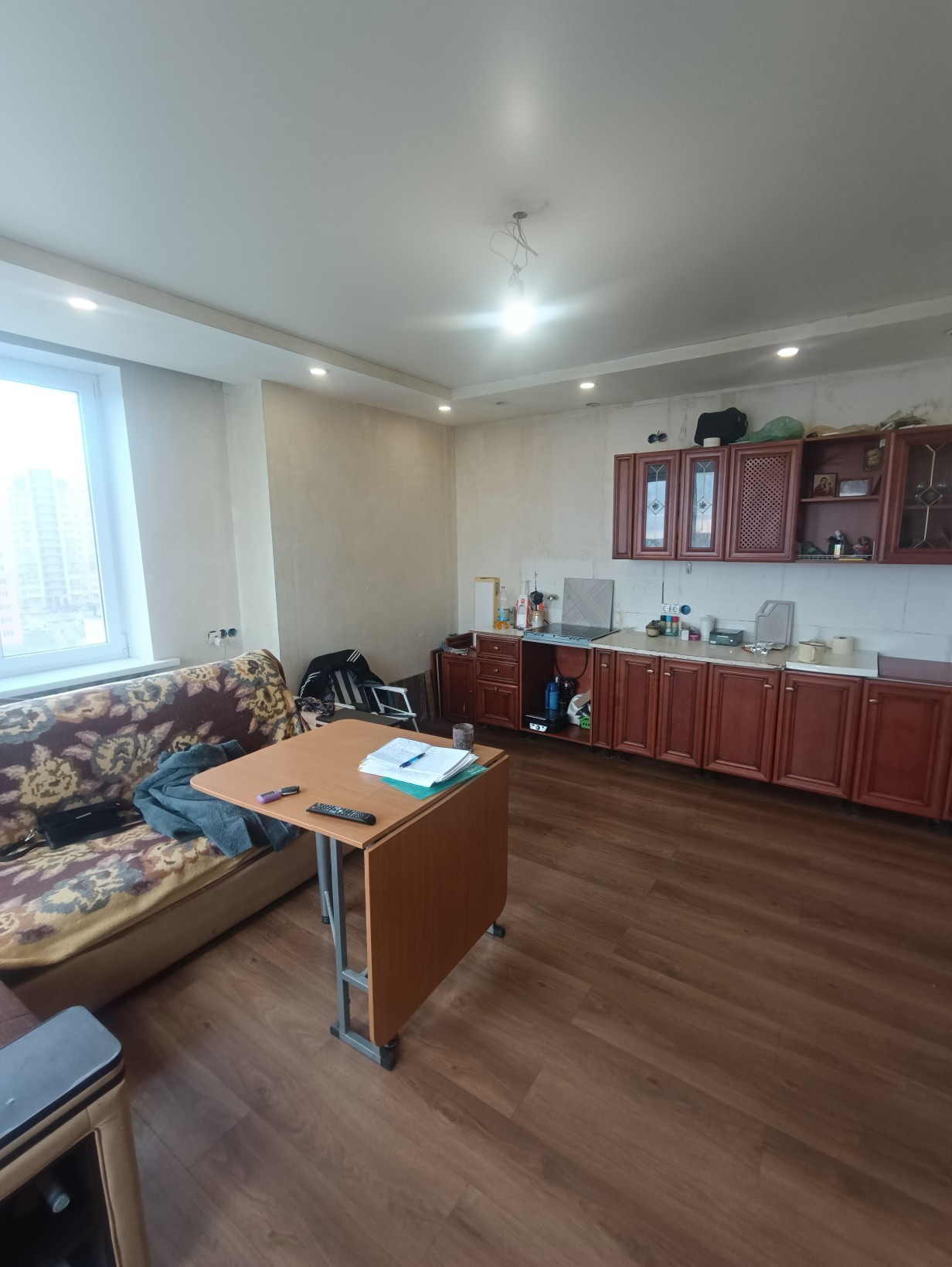 Продаётся 3-х комнатная квартира в п. Юбилейный в новом многоэтажном доме. Очень тёплая и светлая. В квартире выполнен частичный ремонт: шумоизоляция, установлены перегородки, сантехническая разводка на сан.узел, входная металлическая дверь, пластиковые окна. В холле и спальне установлен ламинат. Большой коридор, два балкона. Комнаты изолированные, кухня+зал студия. Санузел раздельный. Установлены счётчики на воду и свет. Два балкона.