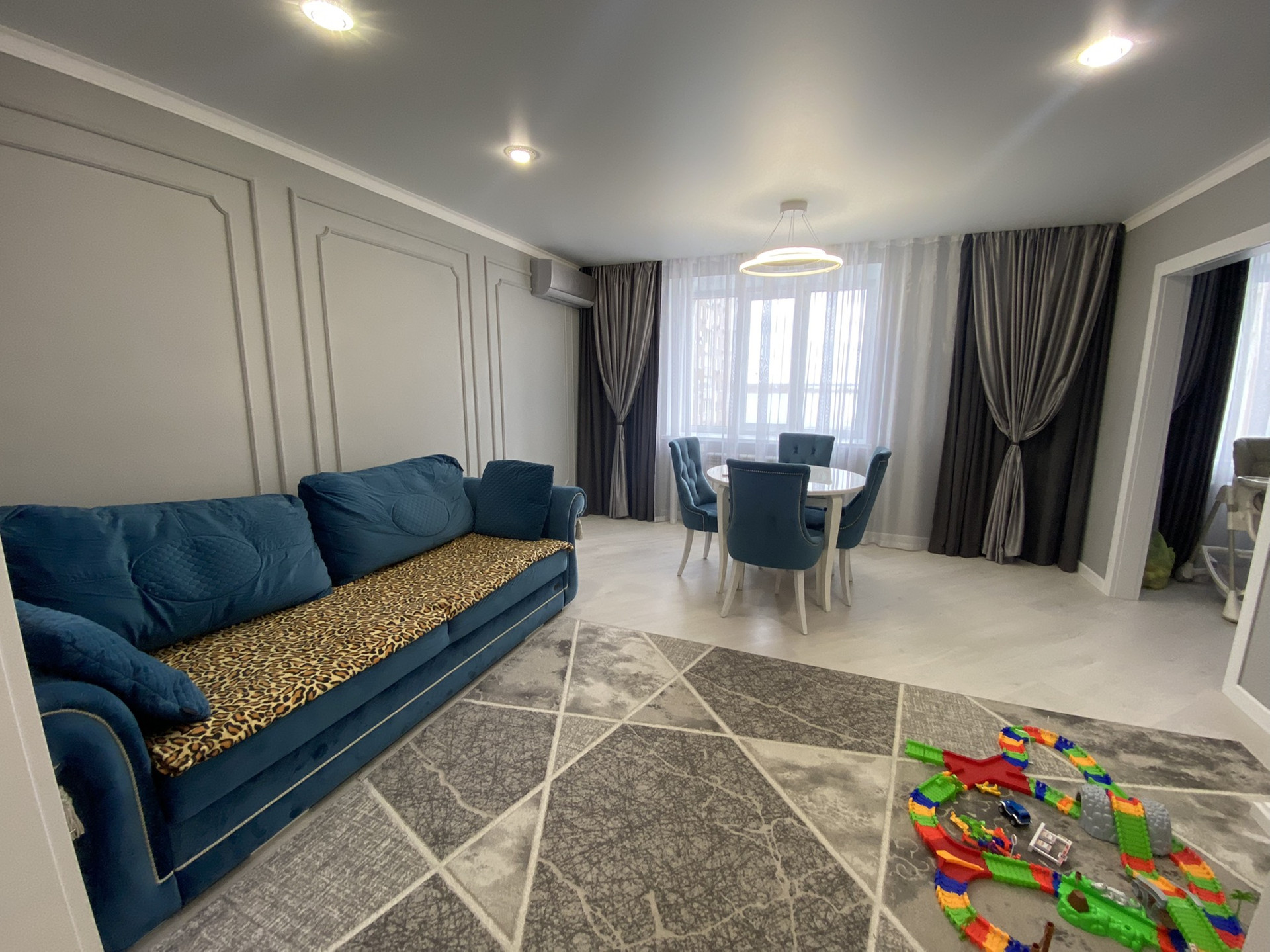 В шаговой доступности гипермаркет лента,школа,остановки автотранспорта,под окнами детский садик!