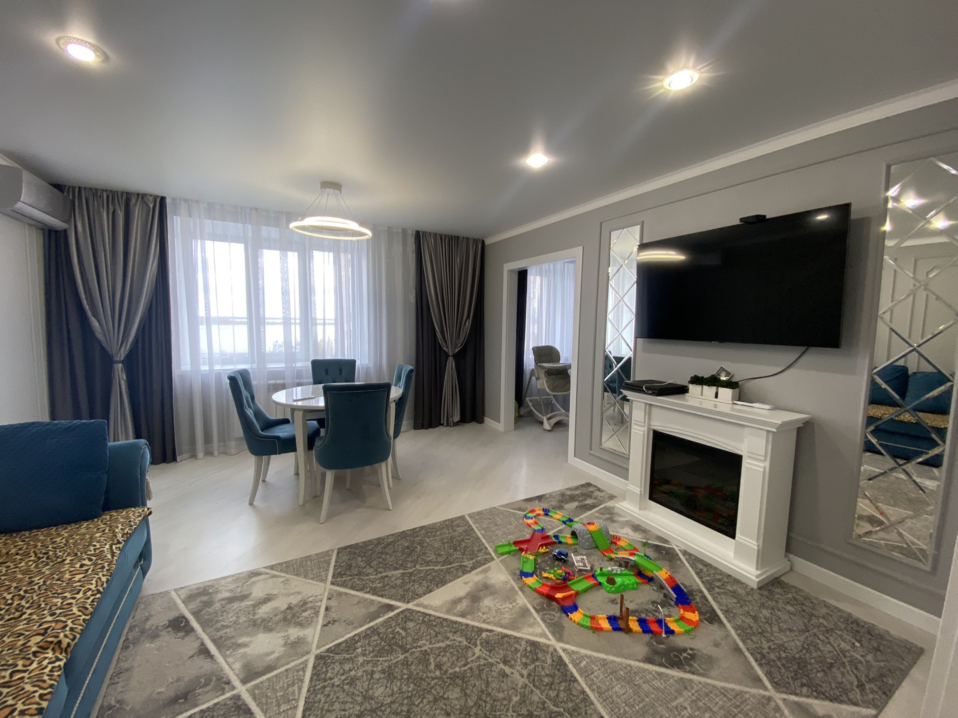 Гостиная стол с 4-мы стульями-креслами,диван,камин,сплит система.