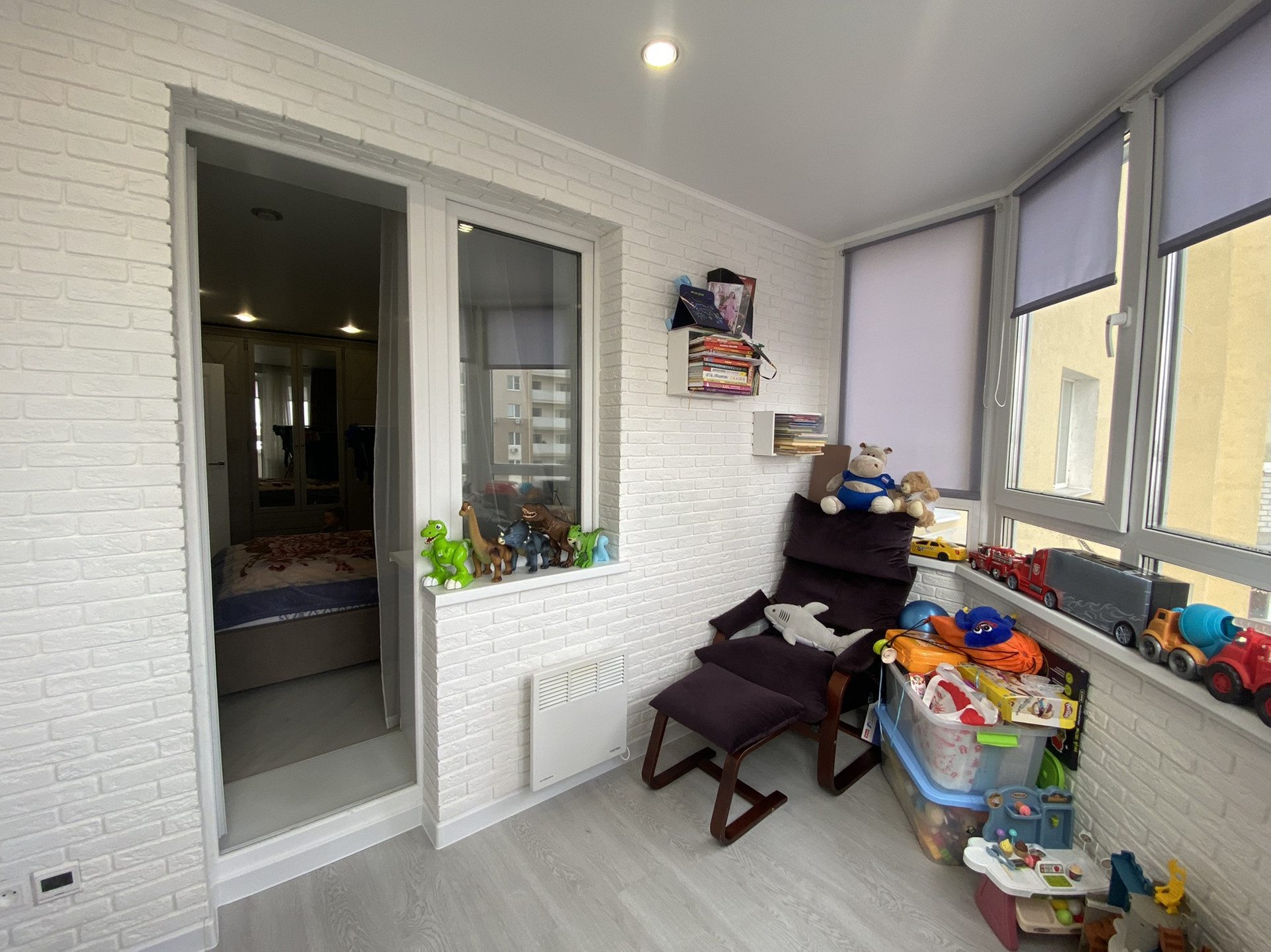 Лоджия полностью утеплена (потолок,стены,пол) на полу Теплый пол,а так же электрический радиатор на стене.