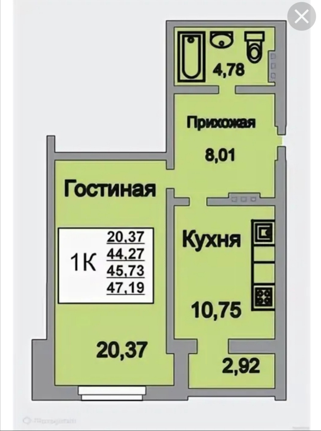Общая площадь 49.4 м2
